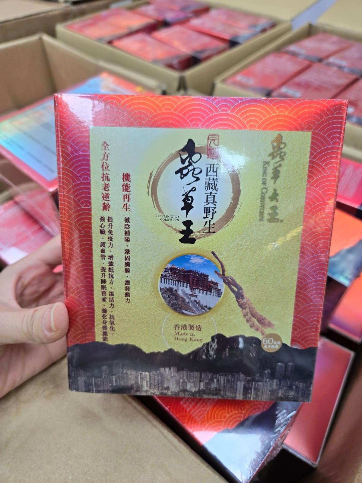 *‼️母親節快閃三天‼️* *超級正蟲草大王品牌* *元祖西藏真野生蟲草王 (1盒60粒)* ‼️供應商現貨,數量有限‼️售完即截‼️ 萬0賣緊$1099❌❌ 😱優惠價💰$275/盒,3盒以上$265/盒 🚘約2星期到貨 西藏頭期野生冬蟲夏草 配合大學教授團隊研發草本複方 鞏固臟腑 修補機能 強化肺功能加倍守護呼吸道健康 主要成份及功效 *[西藏野生冬蟲夏草]* 是在西藏高原地區所生長的一種珍貴中草藥。中醫典籍《本草從新》記載冬蟲夏草具有補肺、養腎的功效。有助調理臟腑經絡,進而改善整體身體不適的情況,提升免疫力,提高身體抵抗疾病的能力。 *[優質培植蟲草Cs-4]* 具有補氣養血、增強免疫力和抗疲勞的功效。有助改善睡眠質素和促進心血管健康。 *[花旗參]* 又稱美洲參,被廣泛用於中醫保健品中,有補氣養血、滋陰清熱的功效。花旗參亦有助於增強免疫力、改善體力和提高腦部功能。此外,對於心血管健康和抗衰老也大有益處。 *[石斛]* 有補腎益肺、清熱解毒的功效。同時有助改善免疫力、促進消化和保護肝臟。 *[五味子]* 可補腎助陽、滋陰養血,被廣泛用於增強免疫力、提升精力和改善睡眠質素。五味子還被認為對於抗衰老和提高心血管健康有益。 服用方法: 口服,每日一至兩次,每次兩粒,飯後服。小童份量減半。 (exp 2026年5月)
