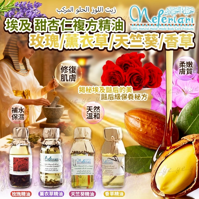 *埃及 🇪🇬Nefertari 玫瑰/薰衣草/天竺葵/香草 甜杏仁復方精油*