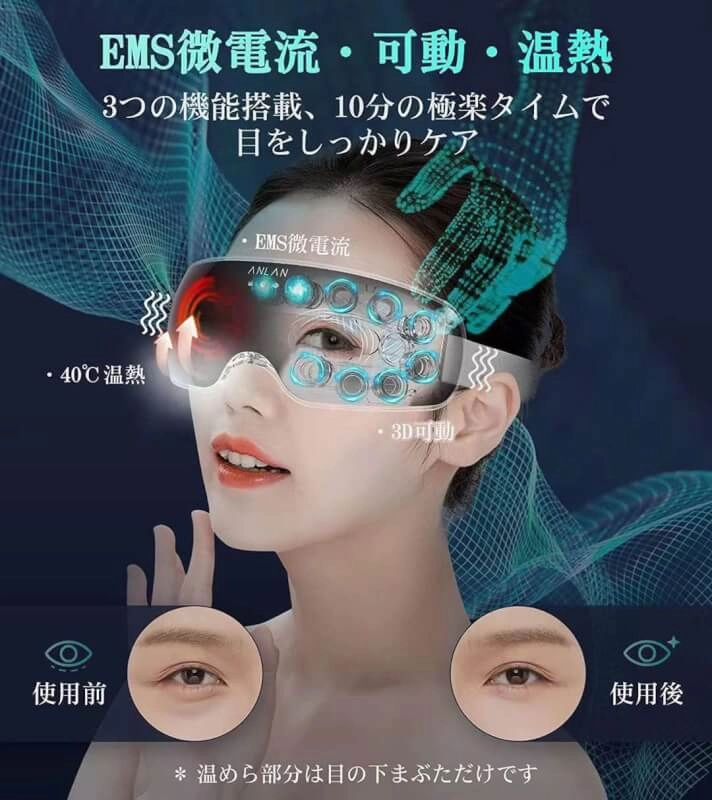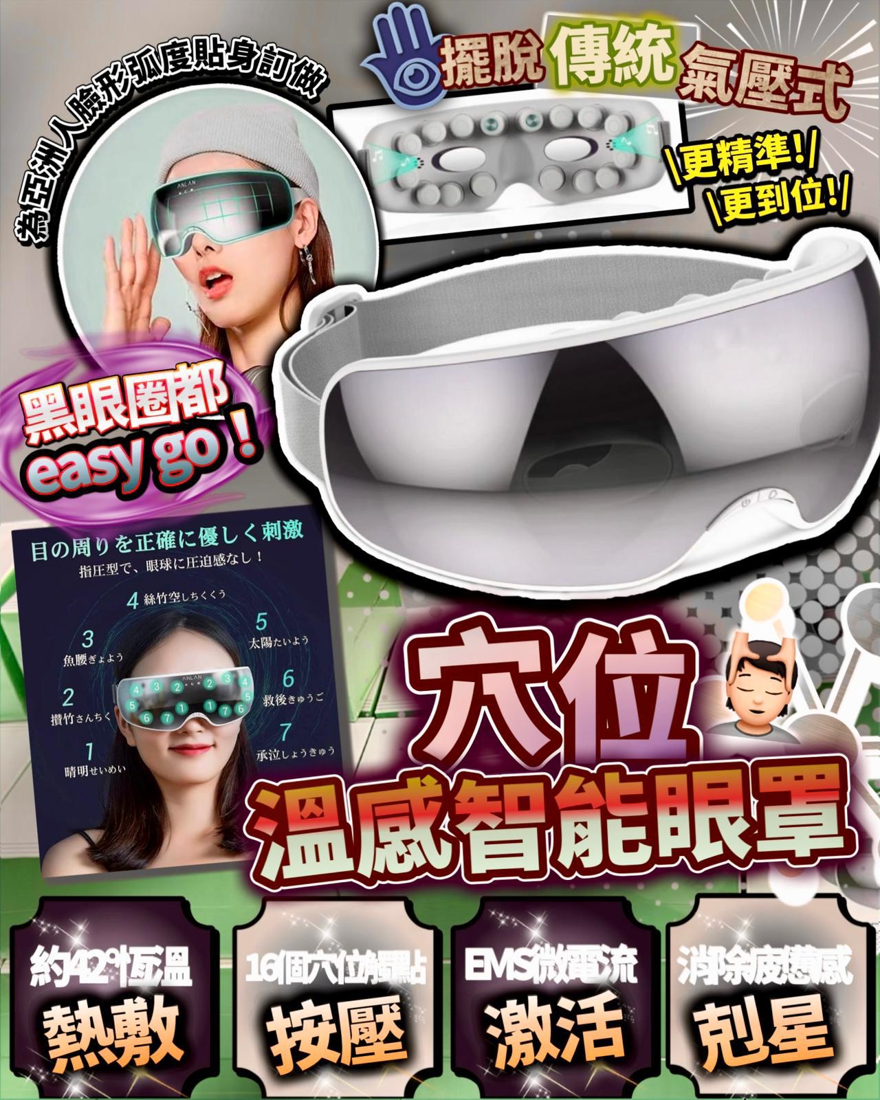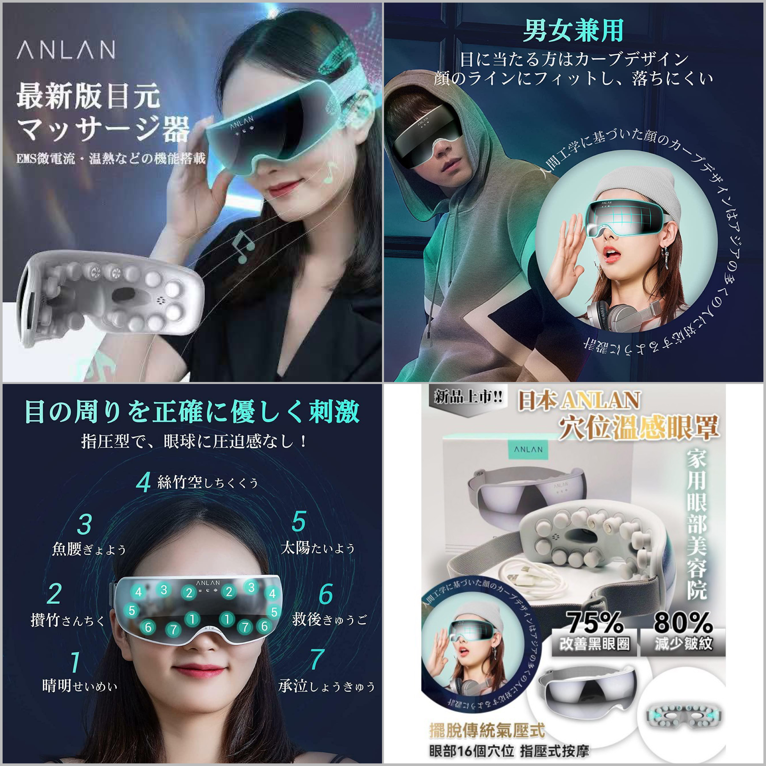 *新品上市 ‼️* *日本ANLAN 穴位溫感眼罩* ‼️現貨‼️售完即止 堅真‼️市價💰$599❌❌ 🎄聖誕優惠💰$399 🚘2星期到貨 升級【指壓式眼部美容】擺脫❌傳統氣壓式 一部可以令你減少皺紋 改善黑眼圈既眼部美容機 嚟緊聖誕心思思🩷 送咩禮物🎁比朋友家人🤲🏻 我有好推介wor💥 呢部日本ANLAN 穴位溫感智能眼罩 😏😏 外表似足未來戰士🪖 骨子裏其實係一名「骨妹」🤭 都市人每日用得最多嘅部位就係「眼睛👁️」 而穴位眼罩就可以精準咁模仿人體手指為眼周16個重要穴位進行按壓舒緩‼️除咗消除疲勞、仲有效去眼圈、收細眼袋、改善眼下垂❤️ - 採用最新設計的指壓式設計,更模仿人體手指的運動,讓你感覺自己在眼睛周圍被指壓。 輕輕刺激眼睛周圍,避開眼球! - 精準穴位按壓 ①四白穴 ②睛明穴 ③攢竹穴 ④魚眼穴 ⑤絲竹空穴 ⑥瞳子髎 ⑦四白內 ⑧四白外 - ⭐️EMS微電流 發出微弱EMS電流的高速聲波振動護理,溫和刺激眼部周圍的肌肉,減少皮膚皺紋和腫脹,緩解肌肉疲勞。 - ⭐️約42°溫熱 40°C±2°C熱度,放鬆眼周肌肉,促進血液循環,溫暖舒適。 - 可調節腰帶長度可根據頭圍調節腰帶。 - 按鍵操作【電源/模式/音樂播放鍵】操作: ■長按電源/操作鍵2秒以上開機,顯示燈顯示集成模式,播放提示音(集成模式),播放內置音樂,啟動集成模式.增加。 ■短時間按電源/操作按鈕的話改變模式。 (按照普通模式→美容模式→睡眠模式→保護模式的順序切換。) ■短按兩次電源/操作按鈕的話內置音樂的廣播接通/斷開。 ■按住電源/操作按鈕2 秒或更長時間可關閉電源。 【EMS ON/OFF/EMS電平調節按鈕】操作: 長按O鍵2秒以上,開啟EMS模式,從1級開始。 短按 O 增加等級。 (最高等級 5) 短按 O 兩次可下一級。 按住 O 超過 2 秒可關閉 EMS 模式。 - 注意事項 *單純的突起物(指壓替代品等保健器具),不包括電動器具,不是醫療器械。 *本產品不是用於診斷或治療的醫療器械,而是一般家庭使用的輔助產品。 - #anlan眼罩 #眼部放鬆 #眼部美容 #穴位眼罩