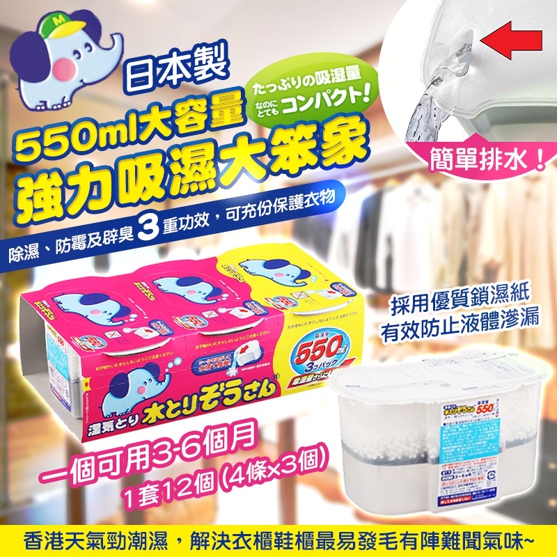 *日本製550ml大容量強力吸濕大笨象(1套4條共12個)*