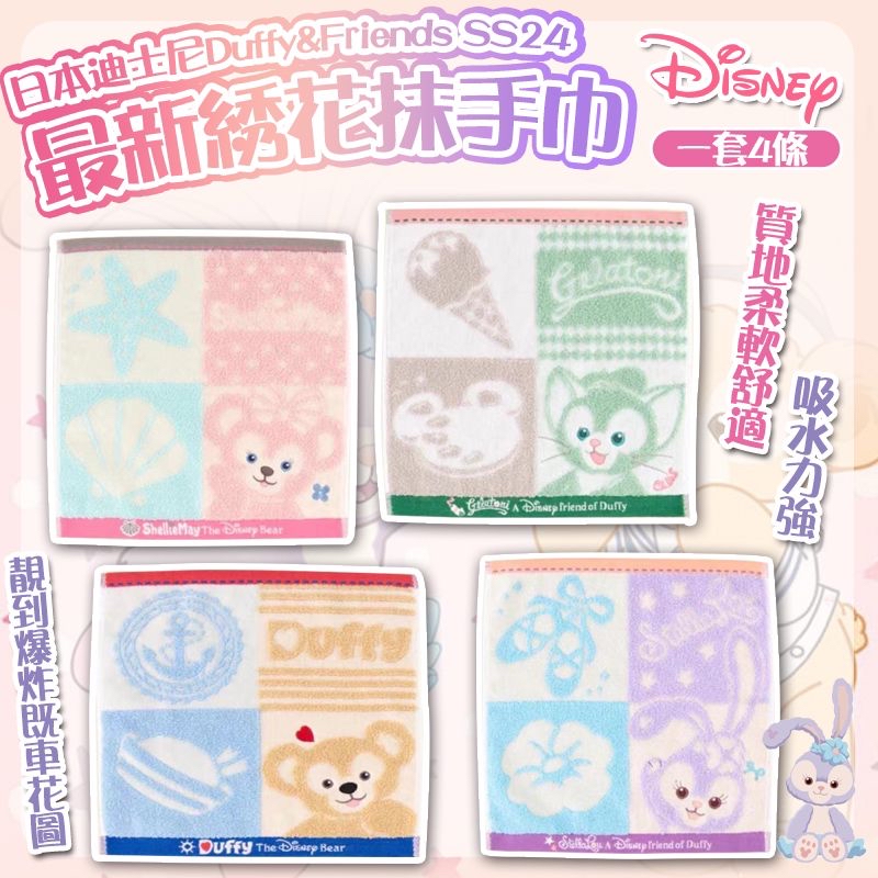 *日本迪士尼 Duffy&Frienss SS24 最新綉花抹手巾 (1套4條)*