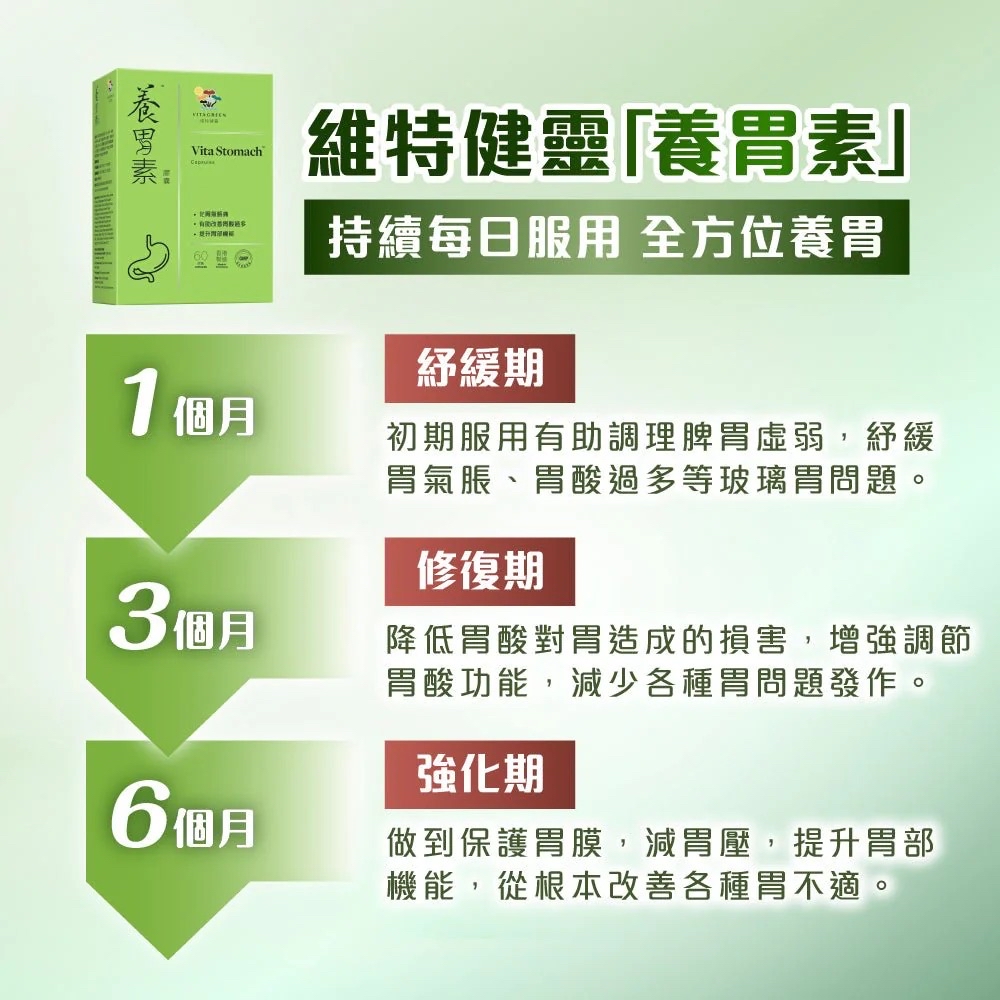 *維特健靈- 養胃素10粒裝* ‼️售完即止 💰$58/樽,3樽以上$53/樽 🚘2~3星期到貨 網民大推玻璃胃救星「養胃素」中西醫都話work! 港人生活緊張,飲食及作息習慣不定時🫨,胃酸、胃脹痛等玻璃胃問題已成常態。好多人都會選擇服用西藥🤔 但市面上不少西藥只能短暫中和胃酸,藥效過後問題或會復發。長期依賴更可能影響胃酸調節功能,導致消化變差,形成「胃弱循環」🥴! 最近網民就大推一款養胃保健品😍,不單可以短暫紓緩,更可以長遠養好個胃,調和胃酸、化胃氣、保護胃膜,令多年的胃問題得以解決,大讚是「玻璃胃救星」👍! 👉根據官方資料,維特健靈「養胃素」有腸胃專科醫生及中醫推薦👨⚕️,採用獨特360中草本養胃配方,連續服用6個月全方位調理,助你打破「胃弱循環」,養好胃健康! 1️⃣第1個月【紓緩期】:初期服用有助調理脾胃虛弱,紓緩胃氣脹、胃酸過多等初起的玻璃胃問題。 2️⃣第3個月【修復期】:持續服用有助增強胃部調節胃酸的功能,減少各種胃問題反覆發作。 3️⃣第6個月【強化期】:做到真正保護胃膜、減輕胃部壓力,從根本提升胃部機能,改善各種不適。