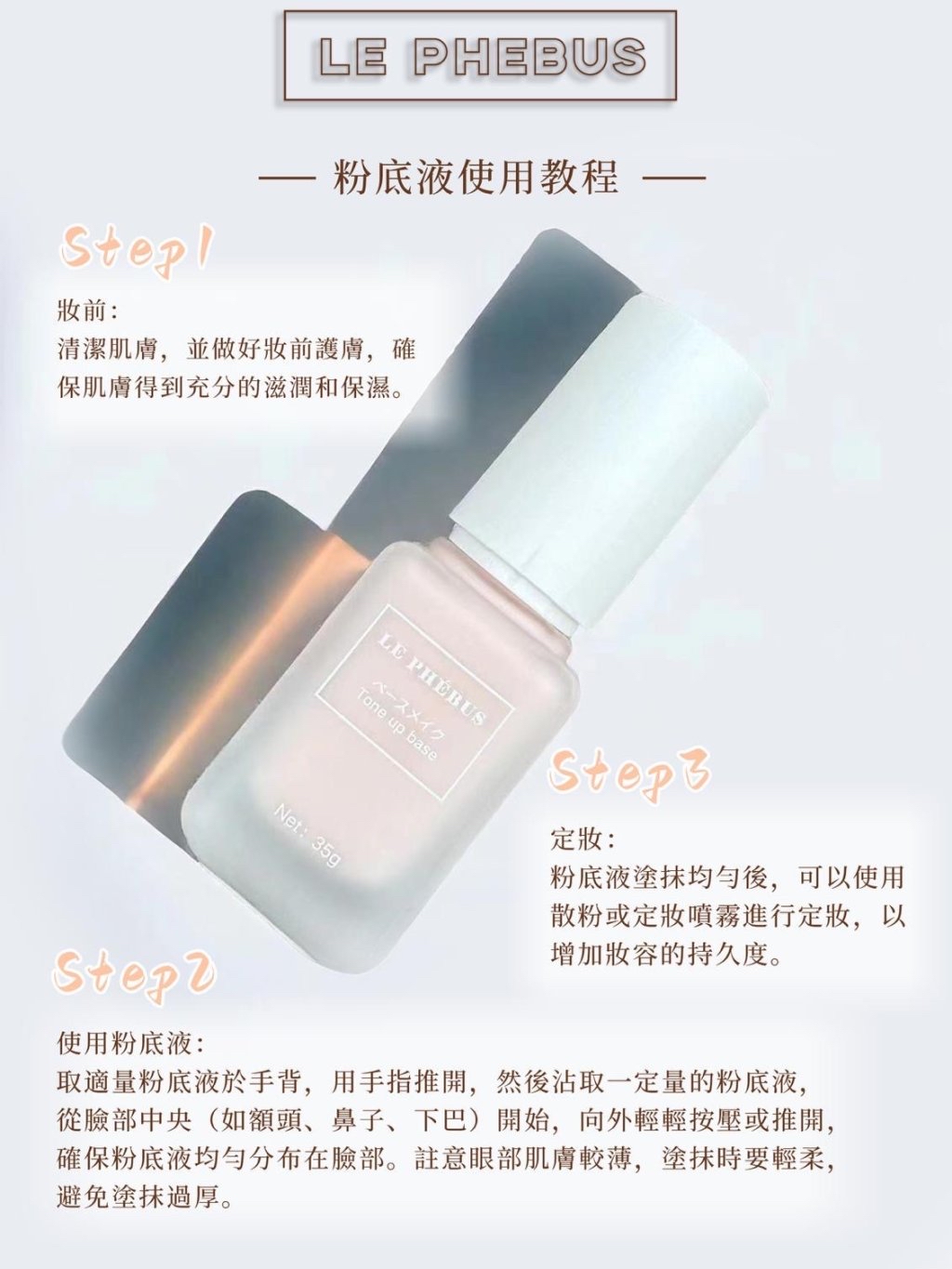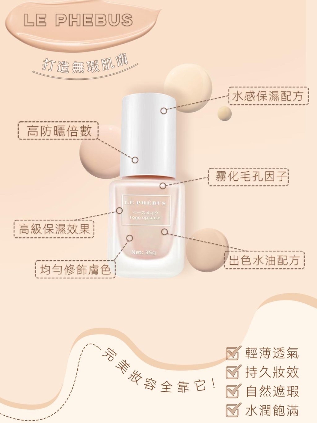 *透光女神Base * ‼️售完即止 *💰店主又一*偷雞*大優惠💰$369 /支,$710 /2支 🚗1~2星期到貨 「出門只需9秒9‼️」想瞬間變女神話咁易啦❤️ 新品 #透光女神Base 真係好正🤞🏻 炎炎夏日印佢2下~ 無負擔又遮到太陽🌞 最緊要係將面部瑕疵光速隱形🔥 玩足全日都唔會出現浮粉、撻粉問題😏 就好Filter咁🔮 有 #一鍵美顏 功能😍 正~ 零粉感精華粉底液 可以比皮膚邊靚邊呼吸🌫️ 精華➕防曬➕自動調色粉底液💆🏼♀️3 in 1功能❤️ 優點! 🌿超水感保濕+美白+淡斑精華底,一邊護膚一邊化妝 🌿自動調色 🌿清爽不黏立,同cream一樣嘅質地 功效 1️⃣有霧化毛孔因子,達到皮膚最佳效果,做到磨皮嘅效果!!!!! 2️⃣超水感保濕配方!唔會造成肌膚毛孔的堵塞,精華狀+成份可以滋潤皮膚 3️⃣最高防曬係數,防曬係數高達SPF50+PA+++,抵抗會讓肌膚加速老化的紫外線 4️⃣保濕度超超超強!肌膚不易亂出油,妝容更服貼,可以維持12小時~ 5️⃣自動修飾膚色的效果。可以潤色!達到修飾均勻膚色,改善暗沉、蠟黃或泛紅的效果。 6️⃣超強遮瑕!水油配方,凹凸肌膚都能完美遮蓋,定妝功效更強🤍 主要成分: 白池花、角鯊烷、鏽紅薔薇、維他命原B5、煙酰胺 容量35g