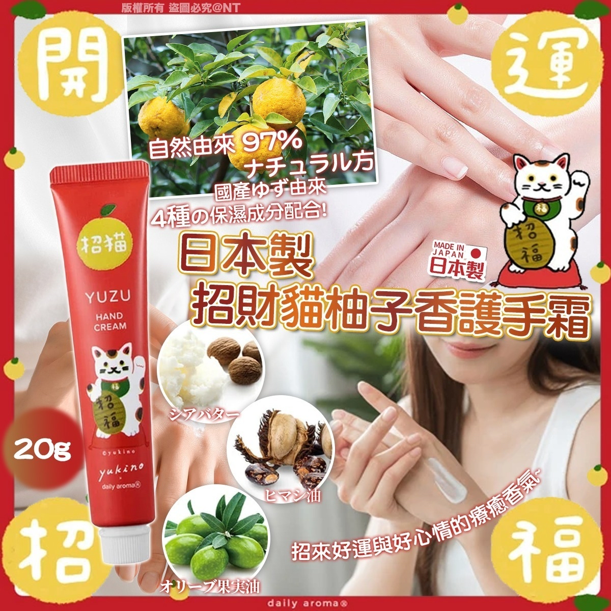 *🇯🇵日本製 招財貓柚子香護手霜 20g*