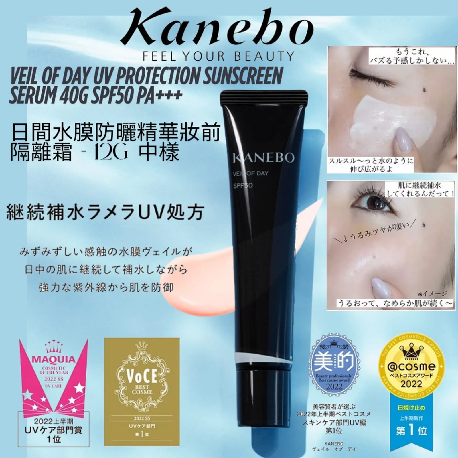 *🇯🇵日本Kanebo 日間水膜防曬精華妝前隔離霜 - 12g 中樣Veil of Day UV Protection Sunscreen Serum 12g SPF50 PA+++^