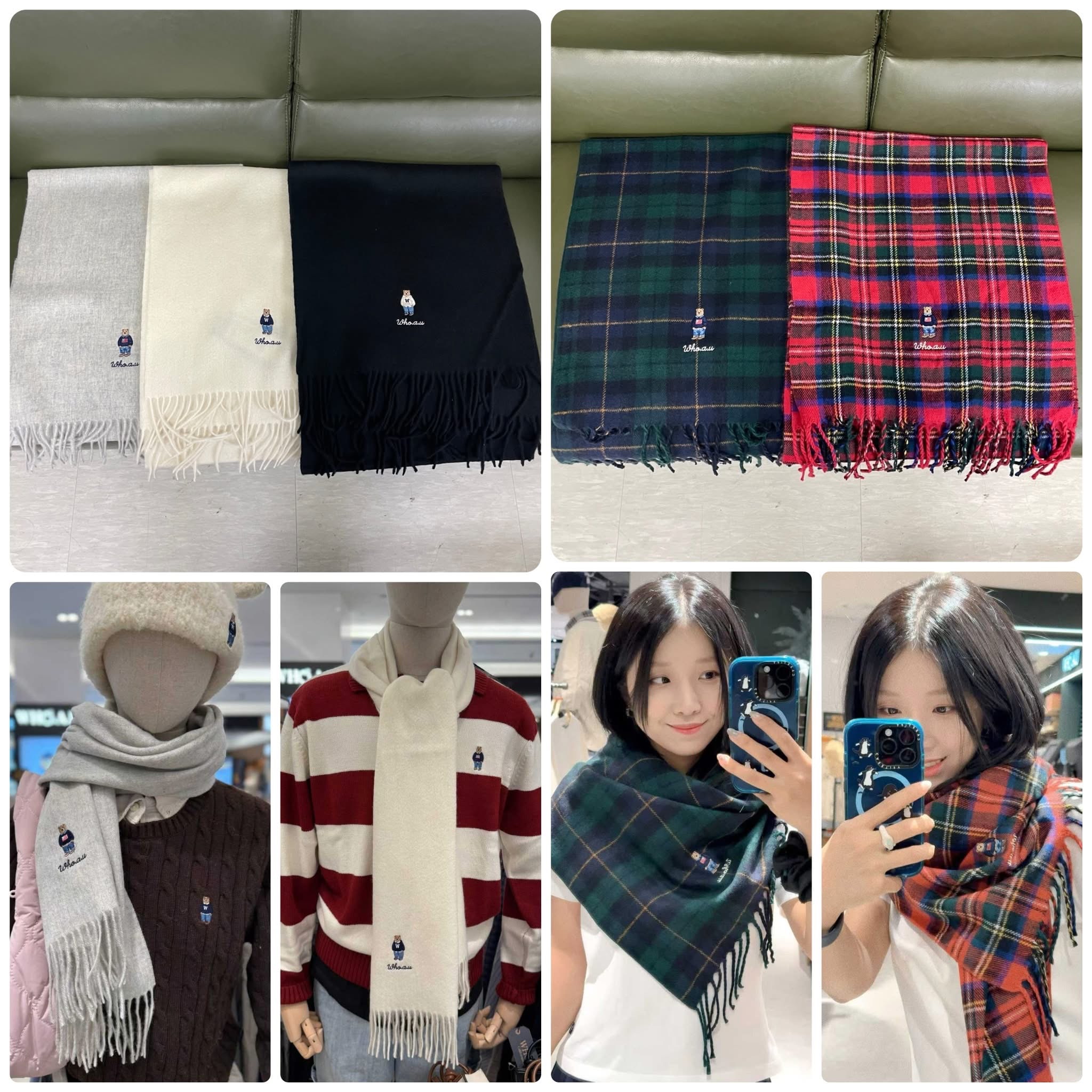 *🇰🇷韓國直送潮牌 Who a u 🇰🇷韓國專門店/免稅店羊UNSEX小熊刺繡頸巾# A2508149* ‼️ 截單 :售完即止❗️ ₩29900❌❌ 😱韓國連線大優惠 💰$169 🛬3-4星期到貨 Color : Melange- Grey, Ivory, Red,Black, Hunter(green) Size: 200* 36 cm 100%🇰🇷韓國專門店/免稅店購入
