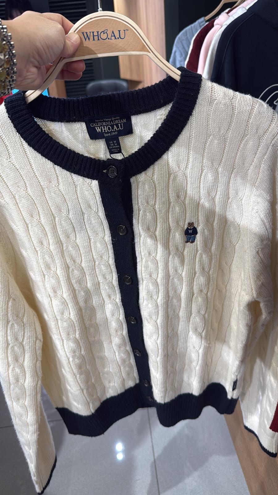 *🇰🇷韓國直送潮牌Who.A.U 免稅店 2025 最新款折扣優惠小熊 女款針織外套* ‼️售完即止 😍Who.A.U 係性價比最高又靚又抵😂 店主優惠💰$285/件,2件以上$279/件 🛬10月上旬到貨 (3-4星期) 3款選擇🌈 女裝Size S / M