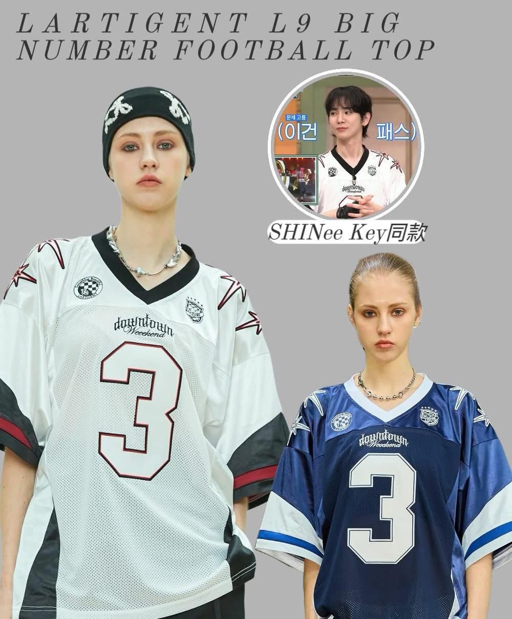 *🇰🇷韓國直送LARTIGENT L9 BIG NUMBER FOOTBALL TOP* ‼️售完即止 SHINee Key同款 😍 市價:$440-470 hkd ❌❌ 店主傻更更優惠價💰$399 🛬3~4星期左右到港 男女同款 顏色:藍色/白色 Fabric: POLYESTER 100%[JERSEY]SPAN 7%POLYESTER 93%[NECK]COTTON 98%SPAN 2% Free Size: 總長75 肩寬63 胸寬83 袖長24 cm)