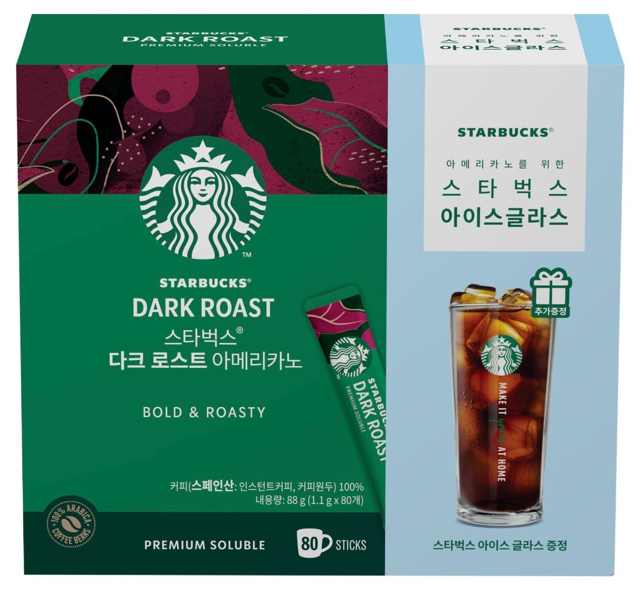 *🇰🇷韓國直送STARBUCKS DARK ROAST 深烘焙美式咖啡整豆咖啡棒 80pcs + 冰鎮玻璃杯套裝*