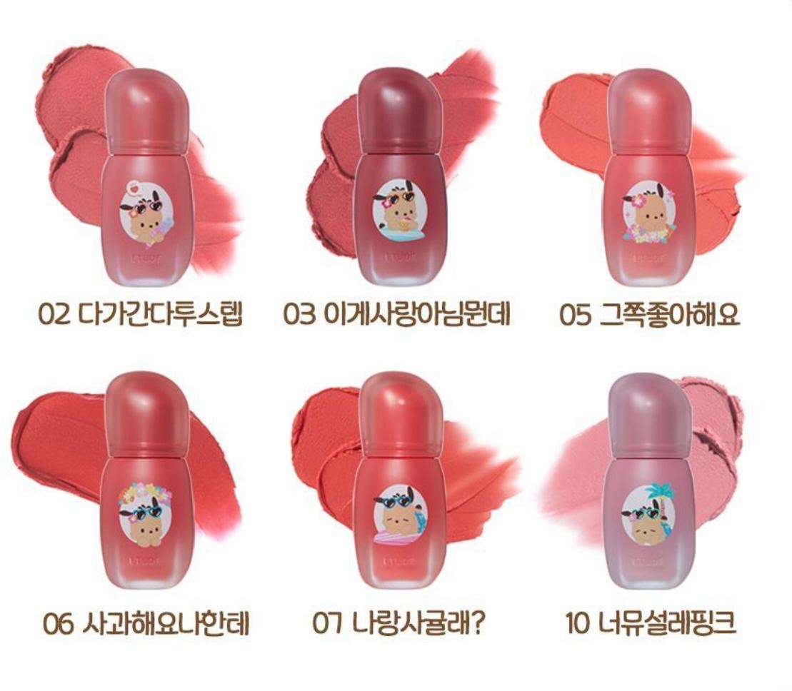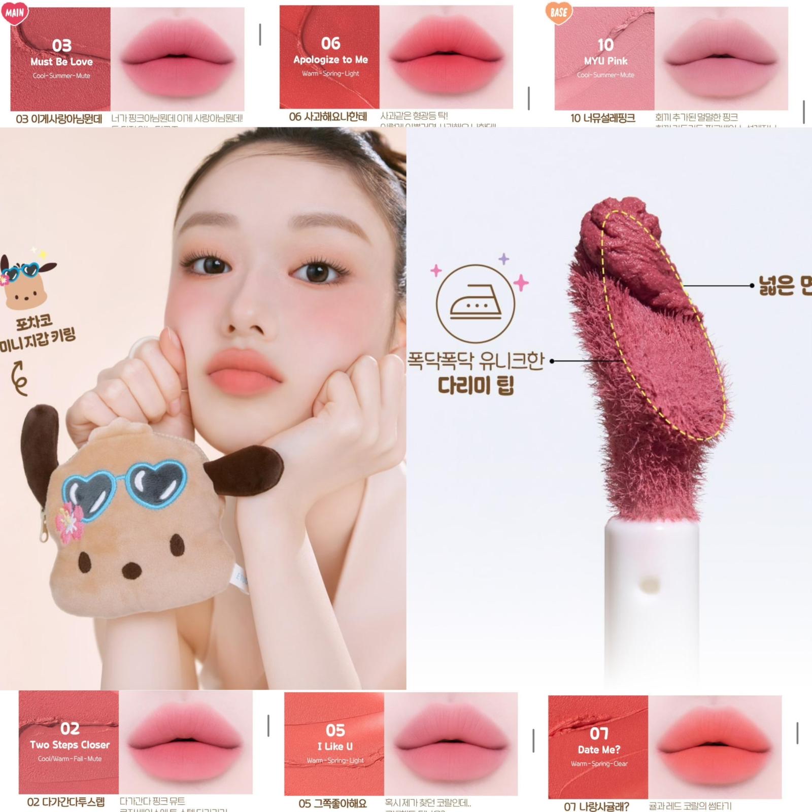 有冇PC狗粉絲呀😍 今日銷售榜Top 1🥇Pochaco+ Etude+特價 *🇰🇷Sanrio x Etude 聯乘款 熨斗唇釉+送Pochaco 錢包公仔鑰匙扣* 🕝截單日:7/7 23:00 限時特價 💰$129 ✈️到港日:3-4 weeks 只有03 06 10係特別版+ 公仔送鑰匙扣 02 05 07 係Pochaco特別版 冇禮物 定色唇釉職人稱號的Etude,這次推出了結合柔霧質地與定色效果的全新唇釉!最神奇的是,光看質地根本不覺得它能定色!是那種柔軟霧霧的質地,但在你塗上後稍微暈染外圍,不知不覺就牢牢定住,真的很神奇。 還有一個亮點就是唇刷設計,這支唇釉用的是「熨斗形狀」的刷頭,與嘴唇接觸面積大,非常適合打造柔霧唇妝