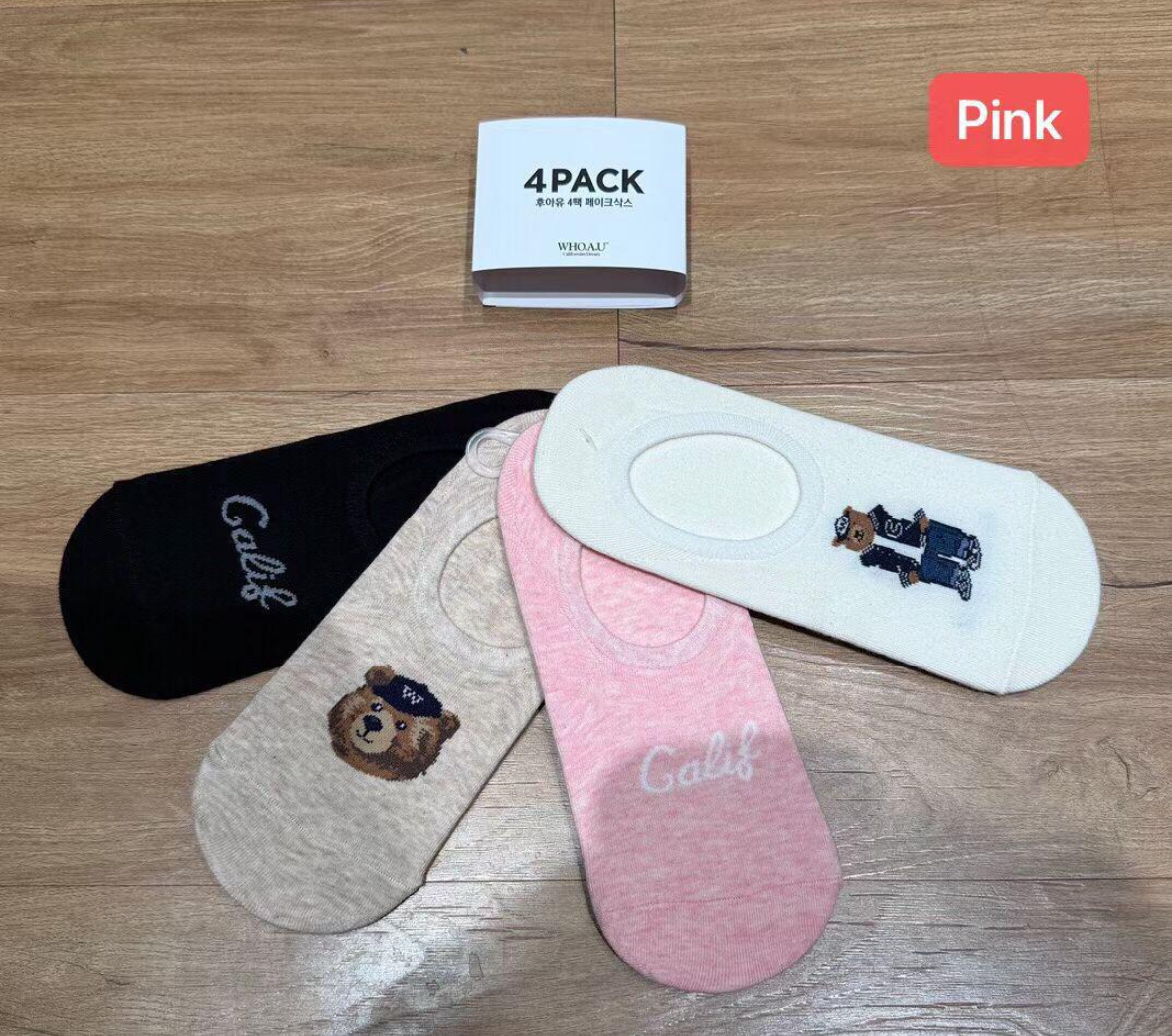 *🐻WHO.A.U 🇰🇷韓國專門店/免稅店2025年最新款 小熊刺繡船襪4對set 折扣優惠‼️ *