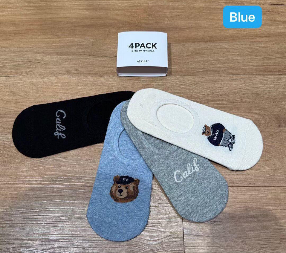 *🐻WHO.A.U 🇰🇷韓國專門店/免稅店2025年最新款 小熊刺繡船襪4對set 折扣優惠‼️ * ❤️So Cute❤️平靚正❤️ ‼️售完即止 優惠💰$128/ set, 2 sets或以上$119/ set 🕝收單日:15/11 ✈️到港日:3-4 weeks Size: Free 22.5-26cm Color:Blue / Pink ✅100%🇰🇷韓國專門店/免稅店購入