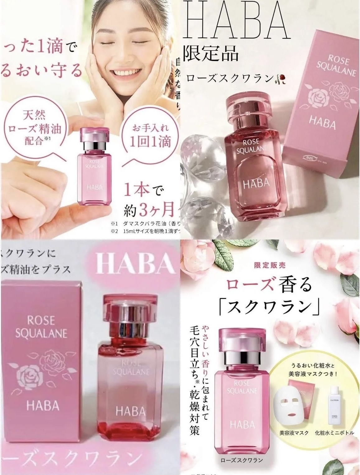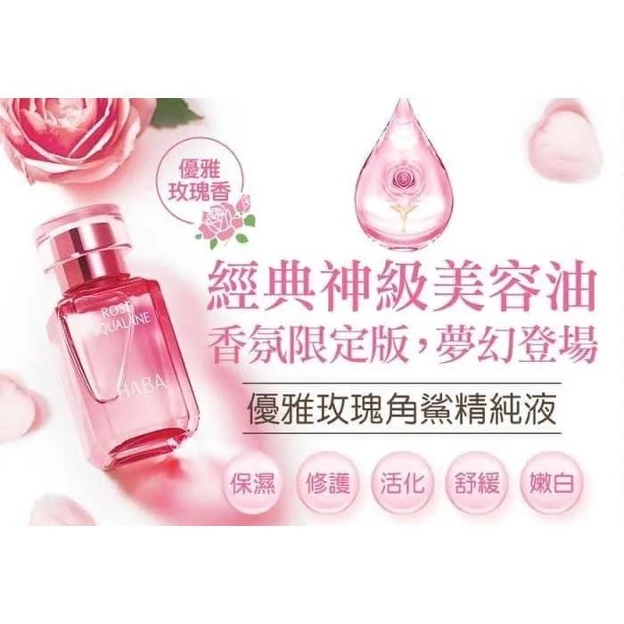 *😍HABA限定玫瑰油15ml* ‼️售完即止 💰$ 128/瓶,2支以上$120/瓶 🚘約2 ~3星期到貨,數量有限 一年只發售一次!含大馬士革玫瑰精油,紫根精華,當歸精華,維C維E維A ,保濕+美白🩷 —— 最高精純角鯊精華 × 珍稀大馬士革玫瑰精油 只要一滴,就能取代乳液及乳霜,保濕、修護、活化、舒緩、嫩白,一次完成!優雅的天然玫瑰香,同時舒緩放鬆身心靈 99.9%最高精純度角鯊,享受上質美肌保養 HABA以獨家技術精萃而成,99.9%最高精純度的「純海角鯊精純液」,融合珍貴的大馬士革玫瑰精油,打造優雅又療癒的上質角鯊保養。 一滴潤透亮,喚醒無限潤澤肌 化妝水後一滴,就能取代乳液及乳霜,立即於肌膚表面形成鎖水保護膜,同時提升肌膚防禦機能,打造水嫩無敵美肌。 一滴全方位,全身美肌魔法 任何季節、年齡、膚質皆適用。從早到晚、從頭髮、臉部到身體,都能一瓶聰明保養。 頭皮護理:取1~2滴,以雙手輕柔按摩頭皮至吸收。 美髮保養:取1~2滴擦於髮尾,修護受損分岔。 美甲護理:取少量以按摩方式擦於指緣及指尖至吸收。 身體保養:可取2~3滴加少量水分擦於全身,或是沐浴後肌膚上的水滴未乾時使用。 持久光澤妝容:於粉底液、飾底乳中加入一滴,讓質地更滋潤、更好推,還能呈現一整天水潤光澤感喔! 15mL可倒出約180滴,以早晚各一滴計算,約可用3個月喔!