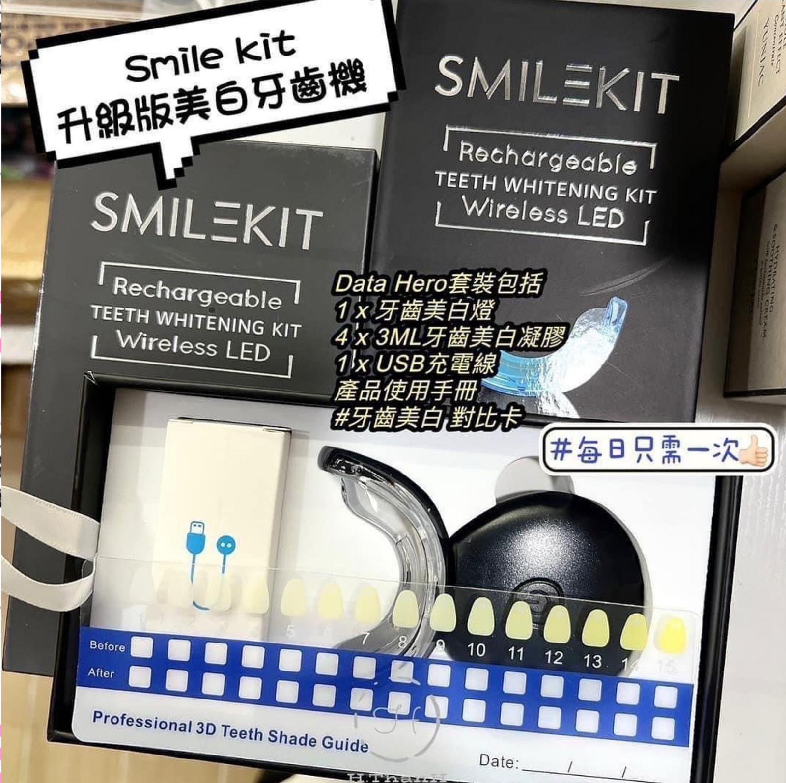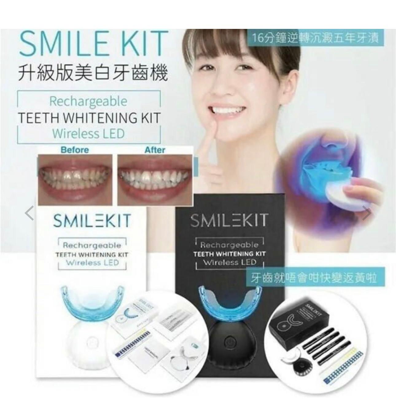 *🦷smilekit藍光美白牙齒機套裝 黑色* ‼️售完即止 💰$130/套 🚘2 ~3星期到貨 16分鐘逆轉沉澱五年牙漬!👍🏻連敏感牙齒都啱用!Smile Kit是使用最新醫學級美白因子技術,深層導入牙齒內層技術,再配合新款的藍光美白牙齒機,令牙齒得到即時美白效果😍而且產品更擁有多個國際認證包括FDA 及CE,大家用得安心,美白放心😃美白凝膠有4支,每次可用四至五次🌹共可用16-20次,而每用一次,牙齒都會美白一度,牙齒就唔會咁快變返黃啦😍 💖Data Hero套裝包括: 1 x 牙齒美白燈 4 x 3ML牙齒美白凝膠 1 x USB充電線 產品使用手冊