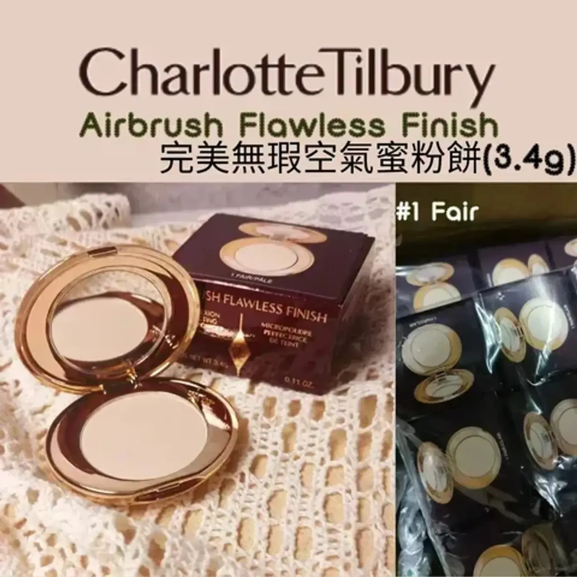 *Charlotte Tilbury CT 奇蹟定妝粉餅 # 01 Fair 自然透明色 3.4g (含中文標籤)*