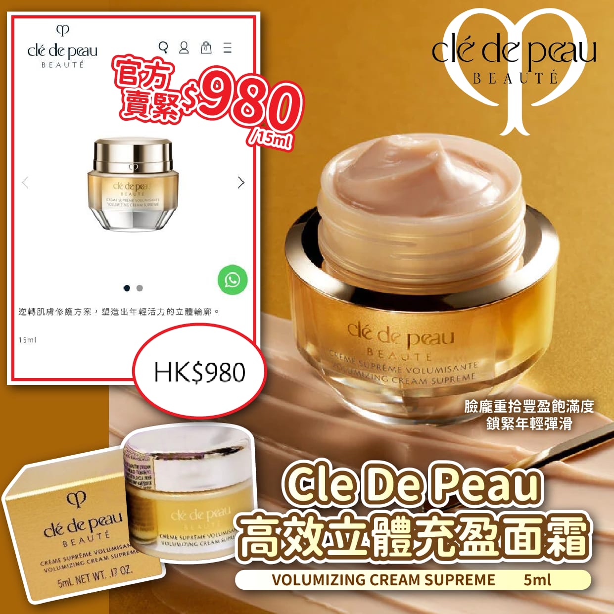 *😱‼️平‼️* *Cle De Peau CDP 高效立體充盈面霜 5ml* ‼️售完即正 ❌專櫃賣緊 $980/15ml❌ 3個=1樽貨裝 📣今日最抵買📣❌官方賣緊 $980/15ml❌🔥份量足足多過貨裝🔥 😱店主優惠💰$58/個,3個或以上$53/個 🚗2-3星期到貨 💁🏻♀臉龐重拾豐盈飽滿度😍鎖緊年輕彈滑🥰🥰🥰 💁🏻♀源自高端科研成果💖蘊含獨家豐盈氣墊因子🧬倍效再生㊙負責支撐真皮乳頭層的第型膠原蛋白🥚 ✅維持真皮層的健康 ✅增強蘋果肌支撐力 ✅鎖住年輕肌密度 ✅提升面部立體感 高效護膚成分🥰極速滲透表皮及真層⚡從根源鞏固肌底結構🔗打造亮麗膚色💫細緻膚質及立體輪廓💯💯💯 💁🏻♀蘊含獨家成分智慧亮肌精華💧 ✅提升肌膚自我修復和防禦潛能 ✅締造極緻亮澤的年輕美肌 ✅不會導致粉刺產生 經皮膚科醫生測試🔬肌膚有效分辨良好和不良的刺激👍🏻締造並保持理想狀態💥💥💥 💁🏻♀獨家豐盈氣墊因子🧬以尖端科研🔬完美調製💖可鎖定和強化肌膚的氣墊網絡🉑 倍效再生負責支撐真皮層的第型膠原蛋白🥚維持真皮乳頭層及毛細血管健康💪 從而重啟第型膠原蛋白的增生💖肌膚重拾回彈力💥重現年輕飽滿的蘋果肌🍎締造立體分明的輪廓💯💯💯