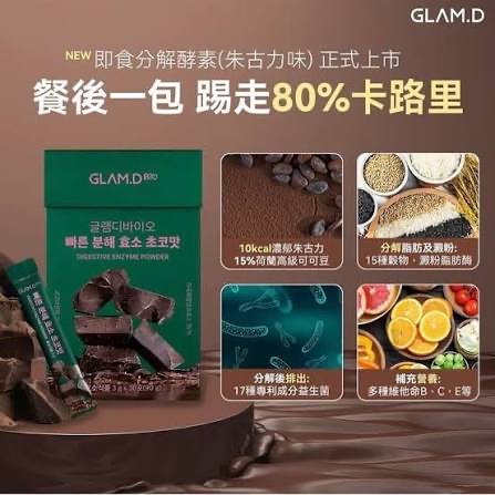 🅱️GLAM D-極速分解酵素粉/增量裝 - 朱古力味180包 x 1盒 ➕ 極速分解酵素粉_穀胱甘肽亮白酵素飲 (14包) x 1盒