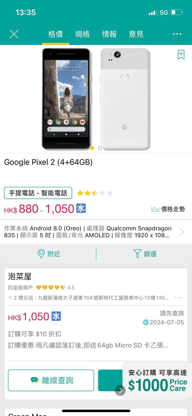 *Google Pixel 2 (4+64GB)一年保養 * 截單:售完即止 優惠價💰$588 🚗預計7月尾到貨 https://youtu.be/sj__vUjaK3w?si=iTwgp3t0ifPaYrBB 作業系統與版本 Android 8.0 處理器品牌 Qualcomm 處理器型號 Snapdragon 835 主螢幕尺寸 5 inch 主相機畫素 1220 萬畫素 RAM記憶體 4 GB ROM儲存空間 64 GB 電池容量 2700 mAh
