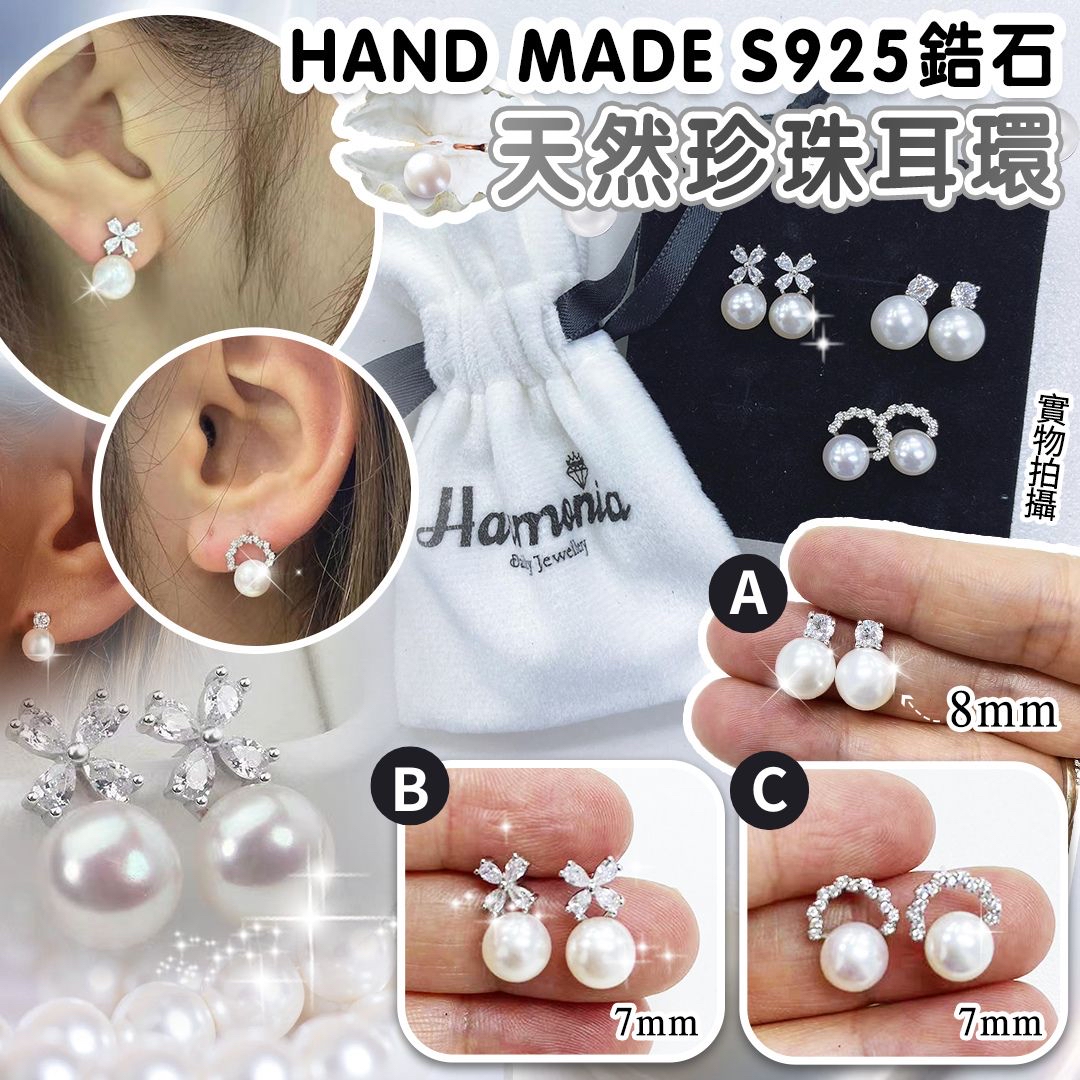 *Hand made S925天然淡水珍珠鋯石耳環* ❌❌截單日:24/6/2024 Wow😱😱原價$4xx/對❌❌ ‼️ 震撼價 ‼️ 依家低至$148/對🥳🥳🥳 💰$158/對;2對以上$148/對 🚗🚗到貨日:9月中下旬 經典簡約款,鏡面珍珠約7/8mm設計,配上閃爍鋯石✨ 最適中嘅size✅,光滑的珠層,珠光可以媲美澳白珍珠的冷白光, 師傅每粒珍珠都用心精挑細選,今次超級優惠價, 每對只需$148, 3款不同設計,百搭易襯,每對附送精美首飾專用絨袋(如圖),真係要入手,唔好錯過🙌🏻 3款選擇: A) 一粒石8mm B) 四葉草石7mm C) 半圓石7mm 📌材質:S925 + 鍍白金 + 鋯石 📌每對附送精美首飾專用絨袋(如圖) 📌購買注意 : 由於珍珠係天然🌱的, 每一粒每一對,顏色,大小都有少少唔同, 係正常的,大家要留意啊~