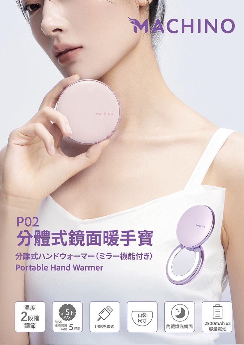 *MACHINO P02 分體式鏡面暖手寶* 🕔截數日期 : 2025年11月23日 店主優惠💰$239/件,2件或以上$229/件 📦預計到貨: 12月下旬 2色選🌈 A. 紫色 B. 粉紅色 冬天又快到了!MACHINO 新出P02 分體式鏡面暖手寶全新登場! 獨特粉盒造型內藏燈光鏡面設計,讓女士們隨時補妝整理儀容。磁吸機身可一分為二,強/弱兩段獨立溫控(45/55℃)隨時與朋友共享。內建兩個2500mAh電池,最長續航可高達約5小時, 172g輕巧設計,雙擊開啟防誤觸,是您冬日必備的時尚暖心產品,就在今個冬天將溫暖與優雅隨身攜帶。 產品特點: -獨特粉盒型外觀設計,內置燈光鏡面 -兩段溫度調節,(強55℃/弱45℃)(+-5度) -無線輕巧,只有口袋大小,可以放在任何地方 -磁吸二合一機身設計,一機兩用,與他人共享暖手功能 -鏡面設計,將機體分離即可使用內側燈光鏡子 -誤操作預防設計,雙擊開啟功能安全安心 -輕巧精緻,重量只有約172g -機體由兩個電池組成容量高達2500mAh*2,可分開使用 產品規格: 產品型號:P02 本體尺寸(一對) :約79.6× 43 x 79.6mm 重量(一對) :約172g 額定輸入:5V-1A 額定功率:5W 內建電池:2500mAh x2 材質(主體) :ABS、PC、鋁合金 執行標準:CE 温度設定:強: 55℃/低溫: 45℃(+-5℃) 充電時間:約4小時 連續使用時間:一檔約5小時/二檔約3小時 ✳️香港行貨 | 一年保養