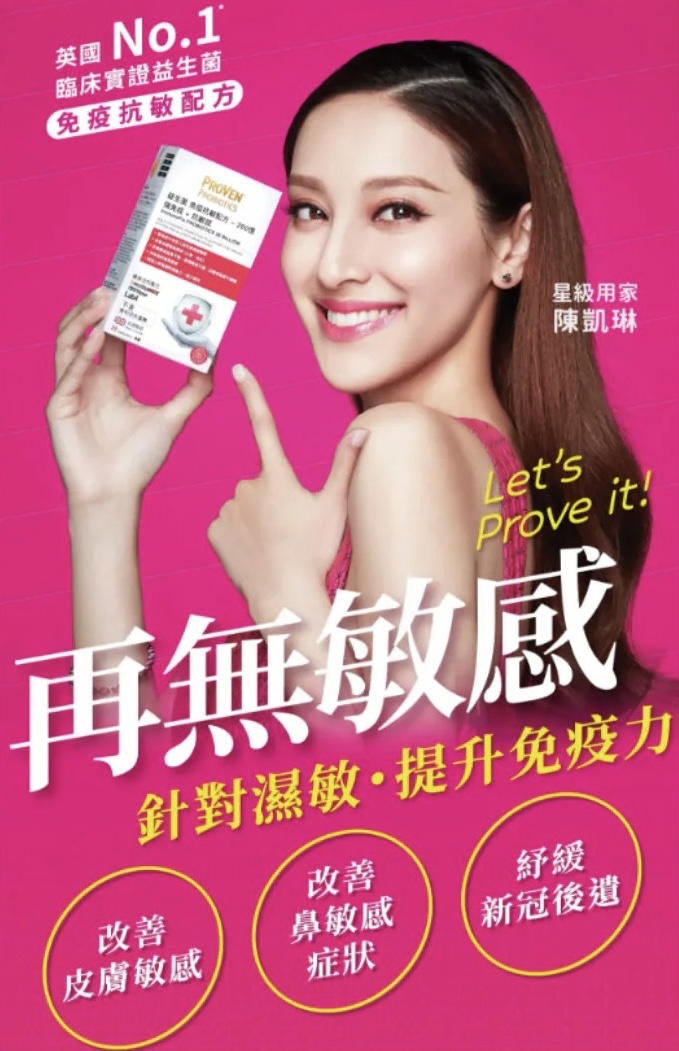 *PROVEN - 益生菌-免疫抗敏配方(260億+強免疫+抗敏感) 30粒 - 香港行貨* ‼️售完即止 萬寧價$399❌❌ 店主優惠$325/盒,3盒以上$315/盒 🚘2~3星期到貨 英國 PROVEN ImmuneFix 免疫抗敏益生菌配方 260億 - 是專為提升免疫力及改善過敏體質而設的益生菌配方,有效改善腸道健康、提升免疫力、抗病毒入侵及減低濕敏問題。超過30年的科研及英國權威大學支持,於多個世界級臨床測試中,證實於腸道健康及免疫系統上都有多種好處。 醫學级黃金比例配方「Lab4AD 免疫抗敏精準配方」 9種活益菌 + 益生元,發揮協同效果 獨家研發的「Lab4AD 免疫抗敏精準配方」- 包括專利唾液乳桿菌、鼠李糖乳桿菌 LGG、副乾酪桿菌、多種雙歧桿菌 (比菲德氏菌)、長雙歧桿菌及青春雙歧桿菌 — 9 種活性益生菌 + 益生元 — 醫學黃金比例配方,有以下功效: 1) 抗敏感 ・ 針對改善過敏體質 (鼻敏、呼吸道敏感、皮膚敏感、食物敏感等),紓缓濕敏徵狀 ・改善皮膚敏感徵狀 (包括止痕、红、腫、熱及疼痛情況); 降低臨床濕敏指數(SCORAD) ・提升整體健康生活素質,包括睡眠、情緒及體力 2) 促進腸道健康、強免疫 ・改善腸道益菌 (微生態) 平衡,抑壓壞菌繁殖,提升腸道健康及免疫力 ・ 調理腸道不適, 改善便秘或排便不順暢 ・ 促進消化系統機能 (胃氣或肚脹問題) ・ 有助減低腸胃敏感、改善腸易激 ・腹瀉後調理 3) 抗病入侵 ・增強上呼吸道免疫力,感染防禦 ・加入「青春雙歧桿菌」,大學科研方向性提高疫苗成效 ・ 配合長雙歧桿菌及多種雙歧桿菌 (比菲德氏菌) 有助促進抗體產生,加快病後復元,減少「長新冠」徵狀風險 • 安全可靠 由 Dr. Nigel Plummer 創立及監督的 Cultech 是英國「MHRA 安管局」認可之醫藥級水平益生菌製造商。ProVen 益生菌經過獨有技術處理 TriPhase & StabilityMax,確保益生菌的數量及活性,開封後無須冷藏。 主要功能: • 專為提升免疫力及改善過敏體質 • 改善皮膚敏感徵狀 (止痕、抗红) • 改善腸道益菌平衡,調理腸道不適 • 改善便秘或不順暢 • 有助減低腸胃敏感 • 增強上呼道防禦能力,減少感染 使用方法: • 每日1次,每次服用1粒, 餐後服用效果更佳。 • 4歲以下小童建議拆開膠囊放入湯中、稀粥或幼兒飲料或食物中,並拌勻; 不可加進高溫液體 (>45°C)。