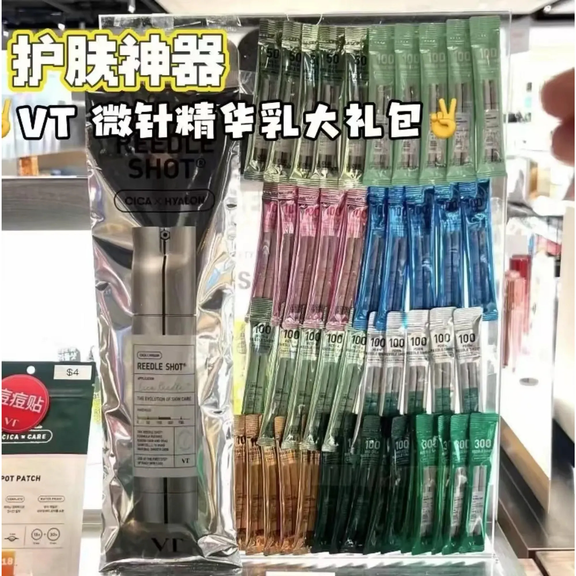 *VT微針小樣精華套裝(共9樣 每款5包 每包2ml 共45包)* ‼️售完即止 💰$158/套 🚘2~3星期到貨 🇰🇷韓國銷售破萬隻的護膚神器 🔥🔥 🏆 🇰🇷韓國 Olive Young No.1 最暢銷的產品 🏆 K-Beauty類別中榮登No.1 護膚增強產品 內容: 全品項七款皆為100SHOT的的精華 基本款為 50 / 100 / 300SHOT 讓肌膚感受循序漸進的微針刺激 全系列九款, 每款5包, 總計45包的超大容量 特別適合從未感受過微針精華的姐妹入手體驗 單次包裝方便攜帶, 外出旅行使用也超方便! 以 ⚜️ 99%純微針形式的成分設計 可以將有效成分縮至比毛孔還小,快速到達肌膚真皮層 打通堵塞的毛孔,去除老廢角質 通過促進肌膚再生,緩解毛孔角質化,打造光滑健康肌膚 使用方法:晚上潔面並使用化妝水後,取適量商品均勻擦拭於肌膚上直至吸收(眼周唇周除外),後續可再進行面霜或面膜等護膚步驟 ⚠️ 進行任何美容手術後禁止立即使用,需等待約2週時間或詢問專業醫生 ⚠️ 禁止搭配任何美容儀器使用(導入儀或LED器材)