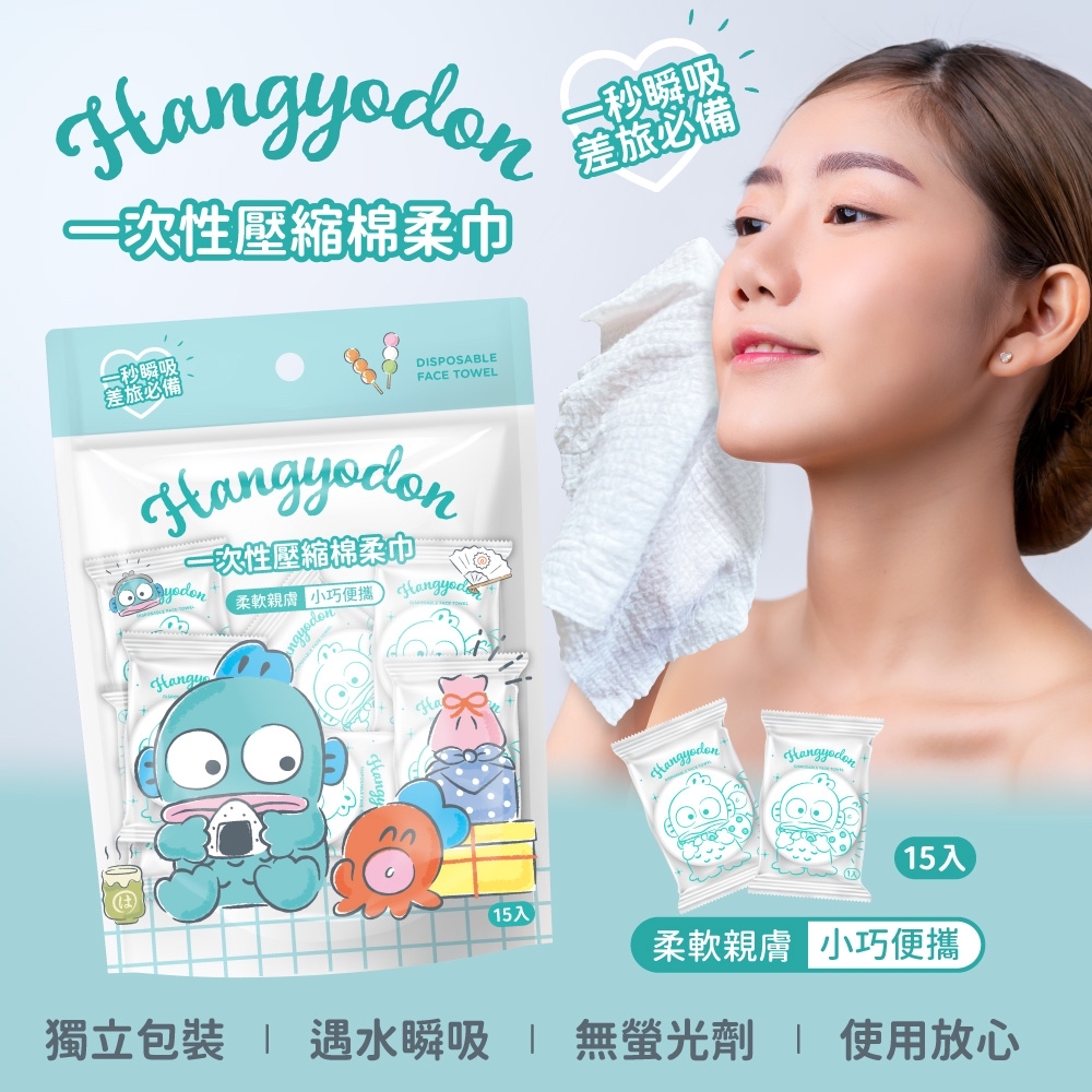 台灣正版授權 Hangyodon 人魚漢頓一次性壓縮棉柔巾(一套2袋)p