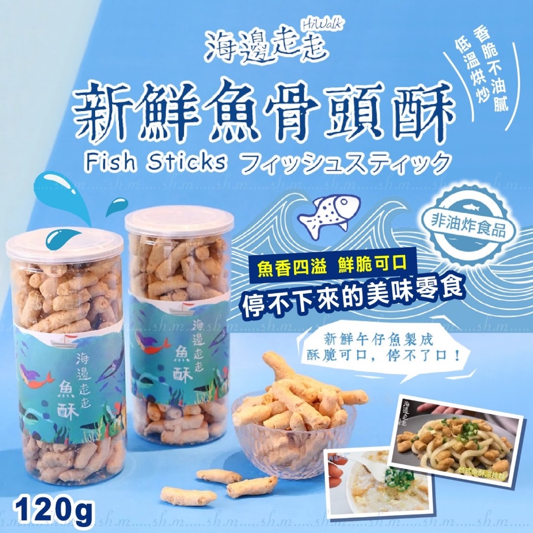 台灣海邊走走新鮮魚骨魚酥120g ❌❌截單日:30/5/2024 💰$58/罐;2罐以上$55/罐 🚚🚚到貨日:7月中下旬 唔止蛋捲‼️零食系列登場 ⭐新鮮魚骨頭酥 120g⭐ 用最天然食材,讓您食得健康,食得輕鬆,品味淡淡自然鹹味😋 採用新鮮午仔魚帶骨製成魚漿,再經過低溫烘炒,健康補鈣又好食!👍🏻 可以當零食咁食,仲可以整個台式魚酥涼拌麵👍🏻 ,伴粥食都得🥰 依家台灣流行食法,仲可以用嚟煮公仔麵加餸,碗麵即時提升鮮味🤩 好味又健康,親戚朋友試過都讚讚讚💯 🐟 香酥不油膩 🐟 帶脆且越嚼越香口感扎實 🐟 完全釋放出魚酥該有的味道 -產地:台灣 -規格:120g -保存期限:180天 📣!!!非到港還有180日,還需運送時間,無法接受短效請勿下單。 📣每批效期略有不同以實際為主。 📣效期:商品銷售速度快,每批都是最新生產,依實際出廠為主。 📣包裝:依季節或每批生產可能略有不同。 -保存方式:避免陽光直射,請置於陰涼乾燥。 -過敏原資訊: ※本產品含麩質之穀物、牛奶、蛋、大豆及其製品,不適合其過敏體質食用。 ※本產品與其它含有魚類、亞硫酸鹽、芒果、堅果與芝麻種子的產品於同一工廠生產,食物過敏者請留意。