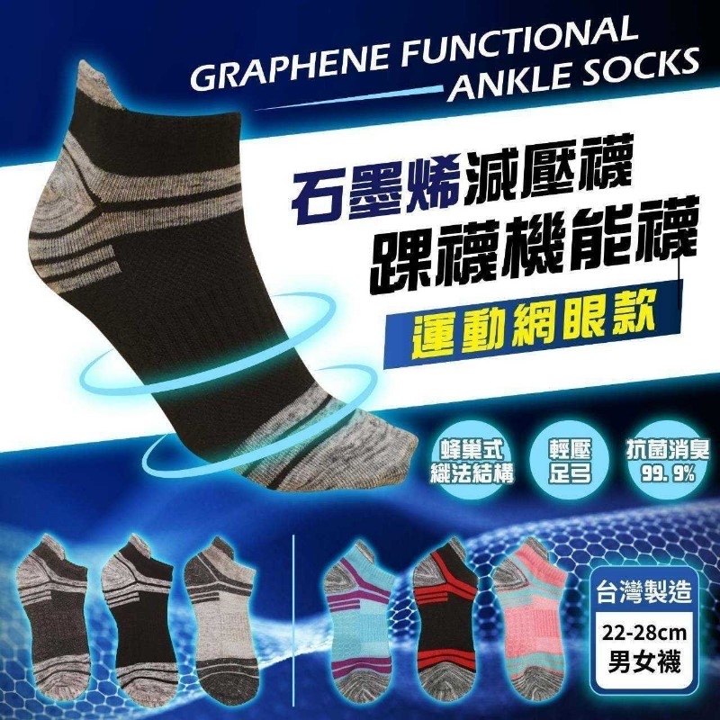 台灣製造石墨烯減壓襪機能裸襪(一套6雙) ❌❌截單日:20/5/2024 🇹🇼 MIT優良品質,品質有保障! 一套6雙,每雙低至$11.3💢$11.3💢 💰$78/套;2套以上$68/套 🚚🚚到貨日:7月中下旬 2024最新黑科技 🏆🏆六星級TOP指定保健襪🏆🏆 一款會呼吸的襪子真的非常重要🌬️ 🏆2024獨特蜂巢網眼結 可迅速地將水份吸收並快速導出,達到吸濕排汗提高足部舒適性 ✨越穿越健康~一雙襪子立即搞定!✨ ✨石墨烯的機能加持下,越穿越輕鬆,舒緩壓力加強保護,一穿立馬感受得到🥰👊✨ 👉足弓加強,減少疲勞,適中彈性不勒 👉石墨烯纖維 恆溫調節促進循環 👉90度腳後跟Y型編織,包覆性加強,不易滑溜 👉超透氣網眼,穿久不悶熱,有效減少穿著悶熱感 👉抑菌消臭,長效抗菌纖維,消臭力更持久 👉天然無毒,不刺激不過敏 -適合22-28腳長 A.男款 B.女款 -產地:台灣 -材質:石墨烯含量80% +萊卡材質 -保存期限:生產日起計年(效期為廠商最新批次) 📣每批效期略有不同以實際為主。 📣效期:商品銷售速度快,每批都是最新生產,依實際出廠為主。 📣包裝:依季節或每批生產可能略有不同。 -保存方式:避免陽光直射,請置於陰涼乾燥。