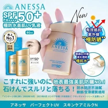 日本境內版 ANESSA 極防水美肌UV乳液60ml ❌❌截單日:5/5/2024 💰$158/支;2支以上$150/支 🚚🚚到貨日:7月中下旬 🇯🇵連續21 年銷售No.1🏆 日本最強防曬品牌 Shiseido 資生堂ANESSA 💦防水 💧防汗 💥防油脂,安心阻擋強烈日曬🌞 👍三效防禦科技,超防水耐汗遇水更強 🌞小金管防曬乳液SPF50+PA++++,專櫃賣緊$29X,靚價低至$1XX😱 😎夏天黎啦‼️年年大賣!!❤️ANESSA最新版❤️ 一支走天涯,出門必備!! ✅使用一般潔膚產品即可輕鬆洗淨 ✅「超防水」:優異的耐水性,通過80分鐘沖水測試後仍防水 ✅輕盈滑順的乳液質地,不泛白、不乾澀 ✅「防沙效果」:肌膚不易沾上砂粒 ✅可做為粧前乳使用 ✅清爽的「柑橘香」 ✅無添加色素、通過過敏性測試(並不等於所有人均不會出現過敏反應) 〇雙效保濕&美肌成分: 綠茶萃取複合物 + 黃花萃取複合精華,防曬同時預防肌膚因紫外線造成損傷。 -產地:日本🇯🇵 -規格:60ml -保存期限:效期為廠商最新批次 -保存方式:避免陽光直射,請置於陰涼乾燥。 -注意事項: ※請確保將產品放在孩童和寵物接觸不到的地方。 ※使用後如有不適,請暫停使用並諮詢專業醫師。 ※如不小心噴到眼睛,請用清水沖洗10-15分鐘後,請立即就醫諮詢專業醫師。