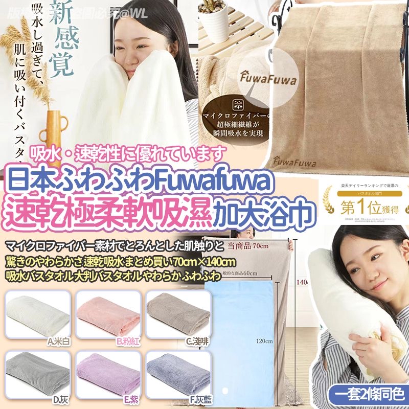 日本🇯🇵ふわふわ Fuwafuwa速乾極柔軟吸濕大加大浴巾(一套2條 / 70x140cm)