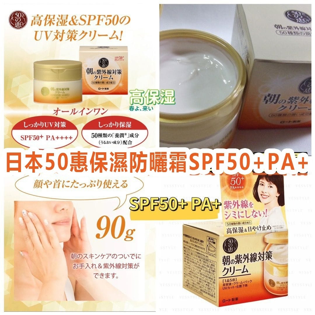 日本50惠日間保濕防曬霜 90g ❌❌截單日:3/7/2024 💰$78/件 🚗🚗到貨日:9月中下旬 👏👏夏天出門前必搽防曬‼️專為熟齡女士而設 🇯🇵日本著名抗老化品牌👍 50惠日間保濕防曬霜 SPF50 + / PA ++++ 女人過左35歲就要開始保養😊😊 呢款50惠 產品日本好多日本名星推介✨✨用家都讚不絶口👍🏻 不老的傳說你都可以擁有🙌🏻🙌🏻 一件有齊5種護膚功效🉐一個step搞掂,真係好用又抵用,補濕抗氧化仲可以☀️防UV 每日只用佢, 連面霜,面膜,化妝底霜, 防曬都慳埋, 真係物超所值🤣🤣 熟齡肌要預防皮膚光老化☀️搽50惠保濕防曬霜 佢包含50種保濕成分,3種膠原蛋白和蜂王漿, 還包含隨年齡而減少的膠原蛋白 用於早晨護理。不但能幫肌膚保濕抗皺,仲有日系最強防曬級別(SPF50+ PA++++)!可保護皮膚免受強烈的紫外線傷害 🙌🏻早上潔面後,取適量均勻塗於面部及頸部,輕拍至肌膚完全吸收 產品不僅可以在臉上使用,還可以用在脖子上。 -規格 : 90g -產地 : 🇯🇵日本