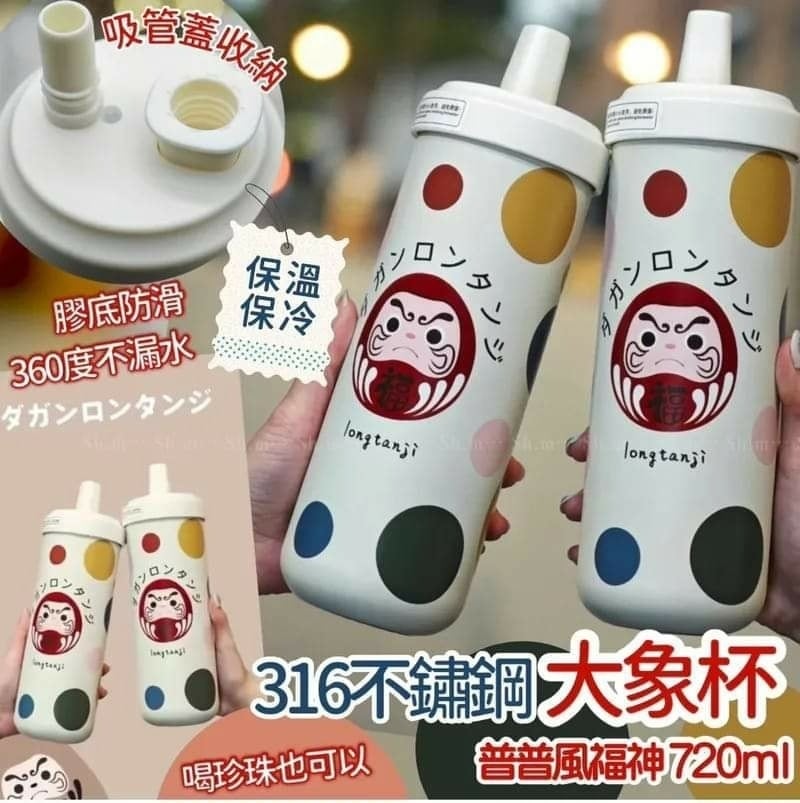 普普風福神 x 316不銹鋼大象杯720ml ❌❌截單日:4/6/2024 💰$168/個;2個以上$158/個 🚚🚚到貨日:8月中下旬 ♻️除了實用環保之外也要可可愛愛❤️ 吸睛繽紛的普普風福神 x 大象杯型的不銹鋼保溫/保冰杯。 採用醫療級的316不銹鋼材質 更耐腐蝕、更堅固 720ml大容量市售大杯的手搖飲均可適用, 加厚防漏水密封圈、360度不漏水,底部膠底防滑、不易傾倒。 ☁️吸管蓋的收納也超貼心、以往蓋子在喝飲料時無處放、也容易不見離家出走、現在多了蓋子的家!以後不用怕找不到、也可以隨時栓緊不怕灰塵唷。 🥤搭配粗吸管、可拆洗、連喝珍珠或是凍飲都不用擔心唷! -容量:720ml -重量:418g -保冰:約6小時 -杯蓋/吸管:食品級PP -材質:杯身:316不鏽鋼 -尺寸:杯高(含蓋)26.5cm x 直徑7.5 cm