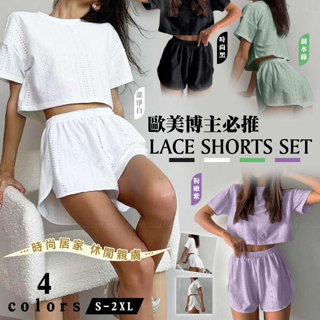 歐美博主必推Lace Shorts Set ❌❌截單日:2/6/2024 💰$65/套;2套以上$55/套 🚚🚚到貨日:7月上旬 歐美博主必推Lace Shorts Set ✨質感超高級✨ 在加+休閒+上街都方便 簡單又不失風采 S:胸圍100 / 袖長51.5 / 衣長42 / 肩寬56 / 腰圍64 / 褲長36 / 臀圍100 M:胸圍104 / 袖長52.5 / 衣長43 / 肩寬58 /腰圍68 / 褲長37 / 臀圍104 L:胸圍108 / 袖長53.5 / 衣長44 / 肩寬60 /腰圍72 / 褲長38 / 臀圍108 XL:胸圍112 / 袖長54.5 / 衣長45 / 肩寬62 /腰圍76 / 褲長39 / 臀圍112 XXL:胸圍116 / 袖長55.5 / 衣長46 /肩寬64 /腰圍80 / 褲長40 / 臀圍116 顏色:時尚黑 / 湖水綠 / 潔淨白 / 粉嫩紫 尺寸:S/ M / L / XL / XXL