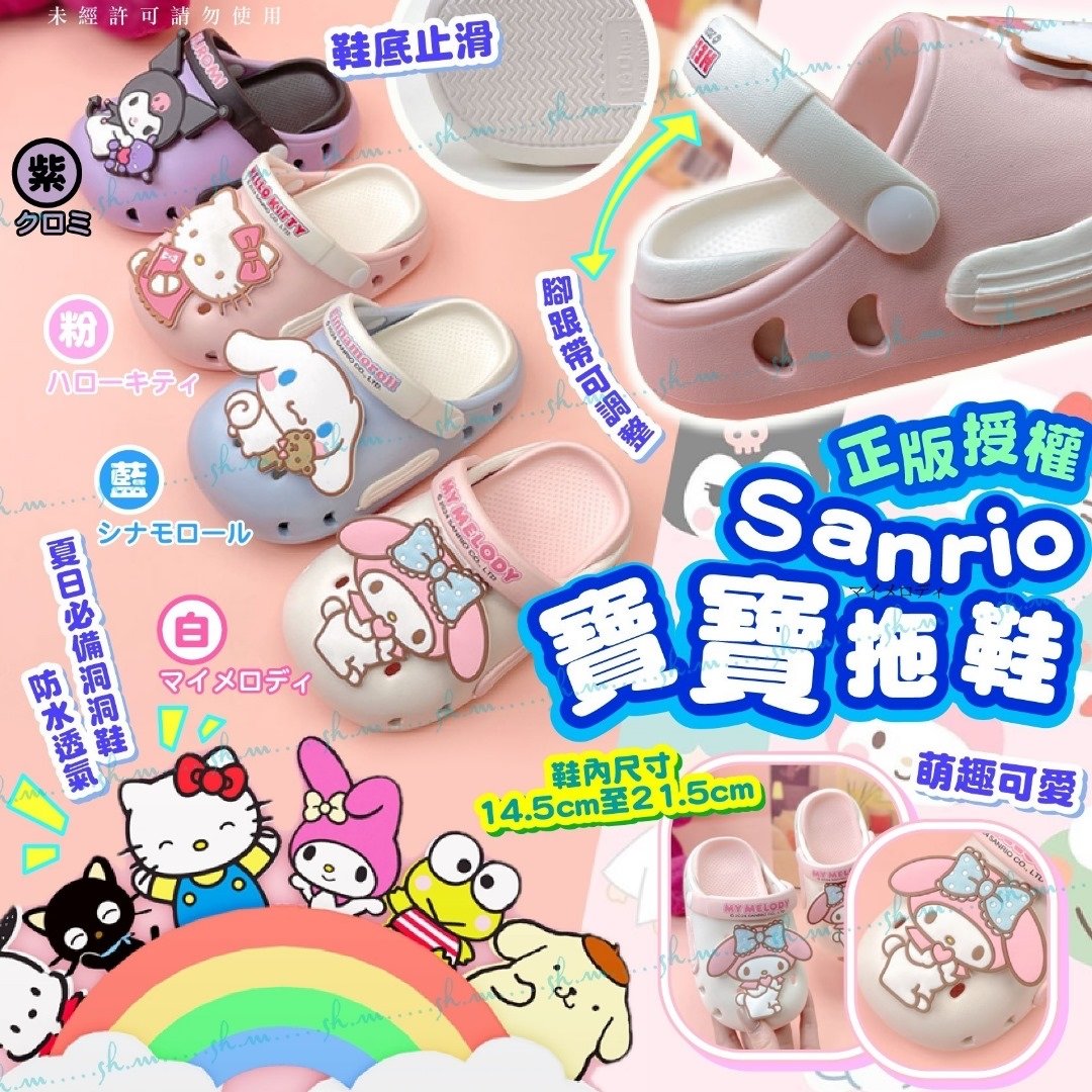 正版三麗鷗夏日兒童洞洞鞋 ❌❌截單日:7/5/2024 💰$55/雙;2雙以上$50/雙 🚚🚚到貨日:6月上旬 一鞋兩穿,涼鞋&脫鞋😍😍 #梅雨季要準備起來了 #可以包色包起來 洞洞鞋實在是太適合小朋友穿了👍 #可當拖鞋也可當涼鞋💗 #可愛又實穿😍 款式: 紫:酷洛米 粉:Kitty 藍:大耳狗 白:美樂蒂 尺寸: 150適合14.5cm 160適合15.5cm 170適合16.5cm 180適合17.5cm 190適合18.5cm 200適合19.5cm 210適合20.5cm 220適合21.5cm