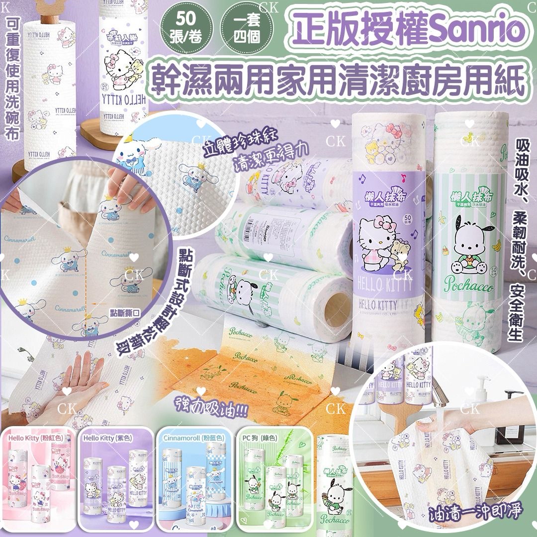正版授權 Sanrio 乾濕兩用家用清潔廚房用紙 (1套4個)