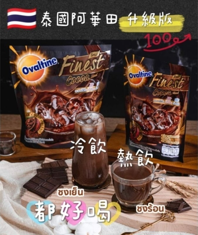 泰國🇹🇭Ovaltine阿華田3in1朱古力(一袋13包) ❌❌截單日:1/7/2024 💰$58/袋;2袋以上$53/袋 🚗🚗到貨日:8月下旬 最近泰國新推出阿華田3in1朱古力🥰,將阿華田配上麥芽及特製可可粉,結合了來自非洲和亞洲的可可濃郁香味🤗 使用脫脂奶粉低脂配方🌟,每包只有110 kcal。 另含豐富維生素C和E✨,有助於抗氧化,健康有益💁,大家可以放肆地飲朱古力但又唔駛怕肥怕增磅💯 ✅採用易於沖泡的冷熱創新,只需暖水即可迅速溶解,凍水或熱飲🔥一樣咁好味😋 ✅少糖、低脂肪 ✅富含維生素 C 和 E(有助於抗氧化過程),並含有 15 種維生素和礦物質🤗 📌規格:1盒13包,每包29g