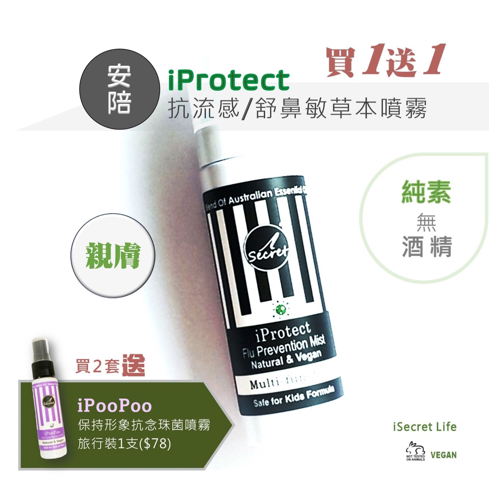 澳洲🇦🇺iPooPoo保持形象抗念珠菌清新草本噴(一套2支 / 每2套再送草本噴霧1支) ❌❌截單:17/7/2024 店主優惠💰$135/套,2套以下$ 129/套 🚗🚗到貨日:9月中下旬 💥買2套送 iPooPoo保持形象抗念珠菌清新草本噴-旅行裝1支 (價值$78) 👑 iSecret Life 王牌 大量用家留言防流感/舒鼻敏非常有效!👌 醫療人員選用👍售完即止 ! ❤️❤️iProtect安陪抗流感舒鼻敏抗菌草本噴霧 - 兒童適用❤️❤️ 🌿純草本親膚配方、微天然清香 ❌不含 : 酒精、香精、防腐劑、三氯沙, 草本不殘留。 🔍原價$168, 限量貨優惠 $138、再買 1送1 (即 $69/1支) 🎁買2套更多送 iPooPoo 保持形象抗念珠菌清新草本噴-旅行裝1支 (價值$78) 🌈 功能/用法: ✅噴衣服/ 喉嚨「 主動」抗流感/舒鼻敏/ 草本消毒 ✅增強呼吸道抵抗力、防病毒入侵 ✅代替酒精搓手液、消毒劑 防敏感、乾燥 ✅淨化空間、減少致敏原 💡使用範圍: #肌膚 #電話 #門柄 #廚房 #廁所 #房間 #被鋪 #嬰兒用品 #衣物 #內衣褲 #女士 #護墊 #家具 #動物設備 #窗簾 #地毯 #辦公室 #公共設施 🌱成份: 萃取 iSecret Life 100%純精油:桉樹、馬鬱蘭、松樹、薰衣草、胡椒薄荷、 絲柏 及 抗菌純露 澳洲製造 Exp: 2025年 容量:80ml 「iSecret Life」 #無人想打針食藥 !💊 🧡一個源於母親對兒子健康的愛與希望,面對多病的兒子不斷活在醫院和藥物副作用間, ☘她尋求草本療法的秘密和長期好處,🔬透過與專家合作,她恢復了兒子的健康,並於2 0 1 3 年透過各大型連鎖店分享草本生活的秘密。 iSecret Life 堅持草本調和💪 包括 : 草本個人、美容、 寵物 護理及無毒防蟲。 🍀純素無藥性、🐰無動物測試、🐱適合寵物、👨👩👧小朋友 ❤在大量用家正面回饋的支持下,加入我們,踏上溫柔呵護自己和家人的旅程😊。 🎁 #iPooPoo保持形象抗念珠菌清新噴霧 🧻獨特草本技術防個人尷尬氣味、念珠菌及病菌。 😅每個人都會「人有三急」,但好多人都擔心PooPoo時尷尬異味擴散,影響個人形象😵 🚽iPooPoo獨有草本配方,在坐厠中形成抗菌水膜「主動」阻隔個人氣味擴散,並「先」淨化坐厠,防念珠菌及病菌。 🌻薑花加薰衣草香 多功效: * PooPoo「前」噴坐廁水面「主動」防異味、細菌 *淨化空間、 物件 *噴內褲及護墊防念珠菌及各病菌 #無人想打針食藥💊 #iSecretLife #iProtect #安陪 #iProtect安陪 #iDream #iEczema #iPooPoo #iFoot #iSecret #精油 #EO #EssentialOil #Beauty #Spa #Yoga #Mother #母親 #媽媽#嬰兒 #Baby #Infant #寵物 # 家庭