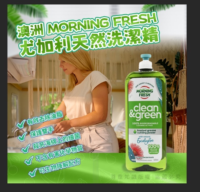 澳洲 Morning Fresh 尤加利天然洗潔精 650ml ❌❌截單日:24/6/2024 💰$39/支;3支以上$29/支 🚗🚗到貨日:9月中下旬 #信心之選 Morning Fresh 全球最受歡迎洗碗液之一 呢款獨特既尤加利葉味道令屋企有陣陣清香味🌱聞落去個人都relax好多💆♀️ ✅有效去除油脂 ✅同時保護雙手 ✅殺死海綿上的細菌 ✅不含有害化學物質 ✅可生物降解配方都