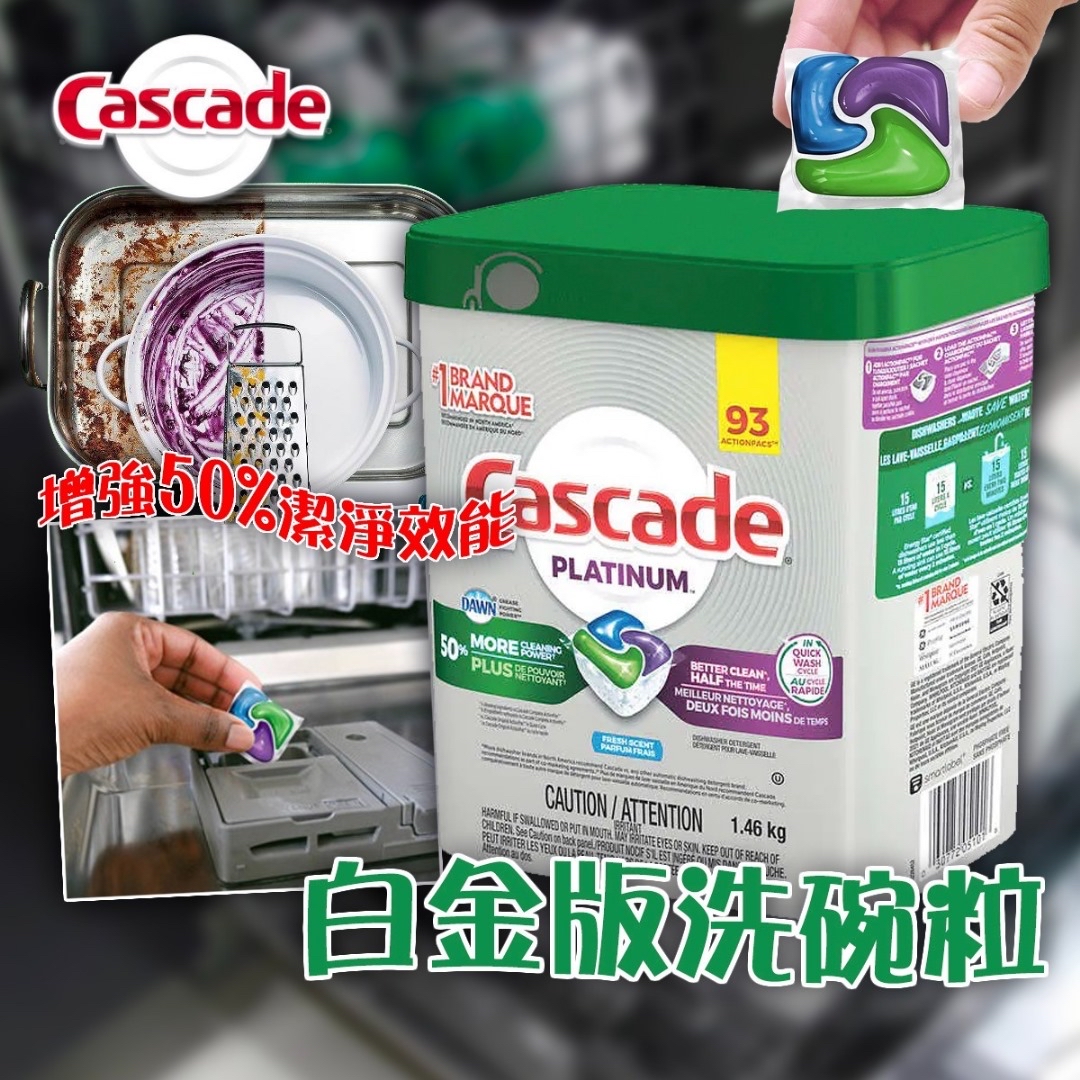 美國直送 Cascade 白金版洗碗粒1.46kg (93粒) ❌❌截單日:7/5/2024 💰$189/盒;2盒以上$179/盒 🚚🚚到貨日:7月中下旬 最強白金版北美🏆 No.1 🏆推薦品牌含有「DAWN」配方㊙加強去油漬能力比普通清潔劑增強50% 👍👍潔淨效能!!1盒93粒,可以用足3個月平均$1.9粒💯 美國直送Cascade 白金版洗碗粒1.46kg (93粒) ⭕全效合一、使用方便 ⭕真正做到慳水慳力 ⭕除咗基本去油外,仲可以去除燒焦殘留物 ⭕適用於硬水或軟水 ⭕令所有餐具閃閃發亮 ⭕無需預洗 (No Pre Wash) 🚫 ❤有效浸泡及軟化頑固的食物殘留🧏♀️ ❤有效分解黏在碗碟上的食物殘留🥰 ❤易溶解、無殘留💕 ❤適合清洗塑膠製品👏 ❤比普通清潔劑增強50% 潔淨效能👏 ❤含有「DAWN」配方加強去油漬能力💪 ❤令洗碗碟機節省多達15gal 水量💦 ❤為清洗後的器具帶來清新香味😻 -產地:美國 -規格:1.46kg (92粒) / 盒 -保存期限:生產日起計年(效期為廠商最新批次) 📣每批效期略有不同以實際為主 📣效期:商品銷售速度快,每批都是最新生產,依實際出廠為主。 📣包裝:依季節或每批生產可能略有不同。 -保存方式:避免陽光直射,請置於陰涼乾燥。 -注意事項: ※請確保將產品放在孩童和寵物接觸不到的地方 ※使用後如有不適,請暫停使用並諮詢專業醫師 ※如不小心噴到眼睛,請用清水沖洗10-15分鐘後,請立即就醫諮詢專業醫師