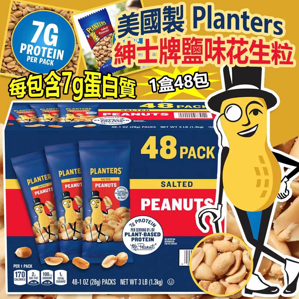 美國製 Planters 紳士牌鹽味花生粒 (1盒48包)