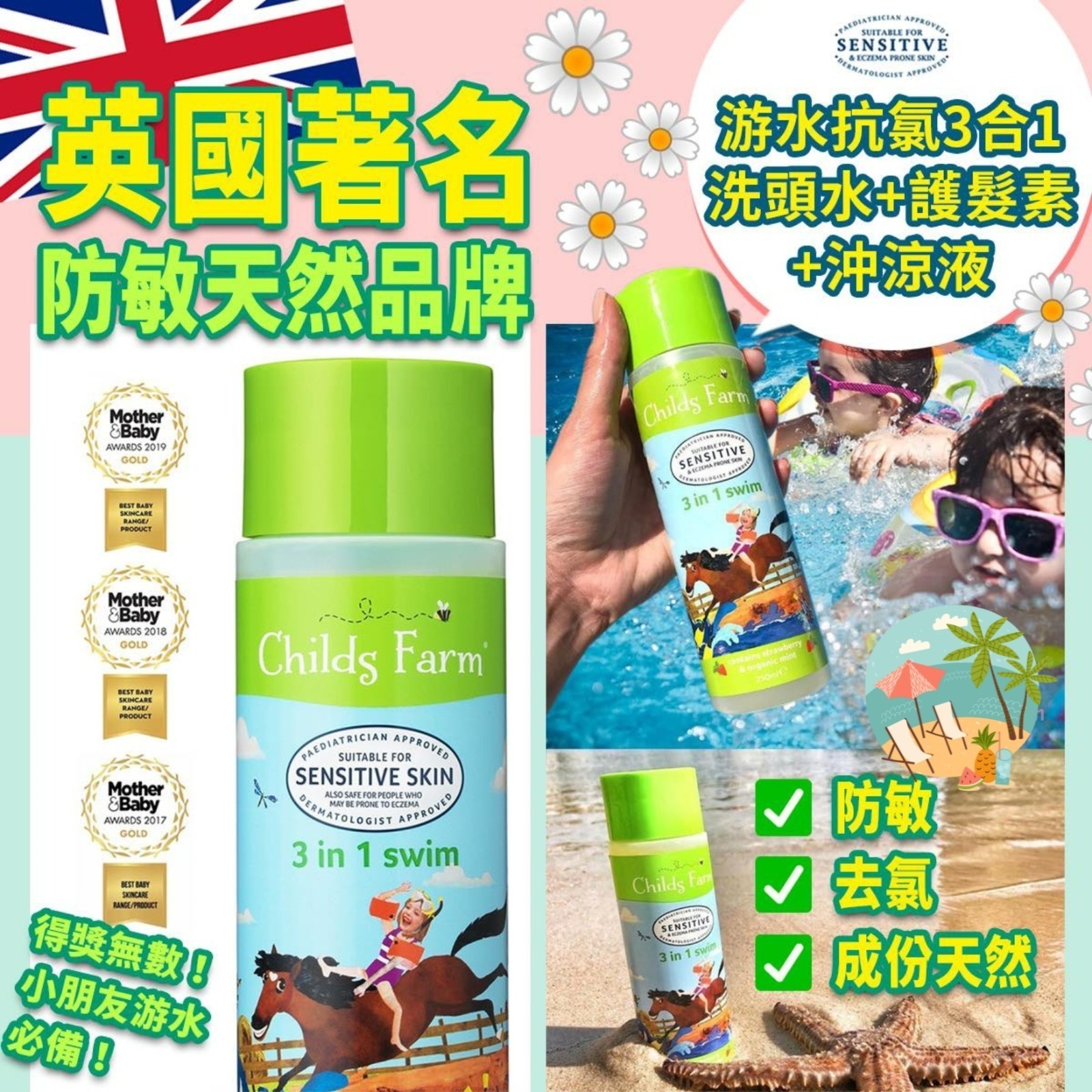 英國🇬🇧Childs Farm 3 in 1 Swim(250ml) ❌❌截單日:24/6/2024 💰$75/支;3支以上$65/支 🚗🚗到貨日:8月下旬 🍓Strawberry & Organic Mints 3合1 洗頭水、護髮素&沐浴露🛁 #呢支好正👏👏👏 #好少特價‼️ ❌❌原價$2xx❌❌ 宜家低至$65/支‼️ ‼️ #英國著名防敏天然品牌 #得獎無數!#小朋友游水必備! #BB到大人都用得 #防敏去氯 Childs Farm 3合1👇👇 ✅洗頭水✅護髮素✅沐浴露 ☑️防敏 ☑️去氯 ☑️95%以上用天然材料,冇添加 🌱有機士多啤梨加薄荷天然成份,好清新舒服既香味。 🏊🏻♀️泳池水有一種刺鼻既味道👃🏼 係因為池水添加咗氯淨化水質,氯會傷皮膚&頭髮! 游完水用Swim 3 in 1 🧴 可以清除頭髮&皮膚上既氯氣🚿🧼 一支就可以由頭洗到落腳,仲有護髮功能,游完水都唔驚會傷頭髮👍🏼👍🏼 曾經攞過好多獎項。响英美,因為小朋友用咗濕疹好返而出名。 😉其實產品係設計俾BB到大人都用得,尤其敏感皮膚既人。 📌規格:250ml 📌產地:英國製造🇬🇧 📌規格:250ml/枝 📌保質期: 未開封至 07/2027,已開封12個月內