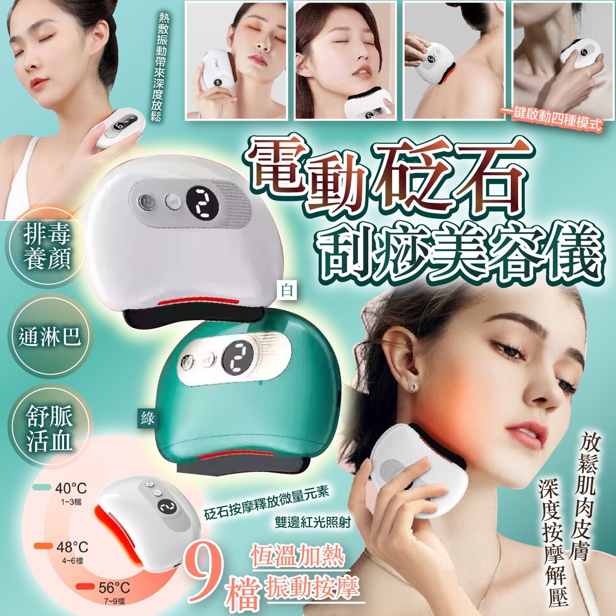 電動砭石刮痧美容儀 ❌❌截單日:20/5/2024 💰$55/個;2個以上$45/個 🚚🚚到貨日:6月下旬 A.白色 B.綠色 #刮痧 #排毒 #排濕氣 #通淋巴 #供應商勁減 #舒緩酸痛不適 #促進身體血液循環 🔴砭石刮痧新科技:電動刮痧板帶來按摩美容新體驗,面部也能排毒養顏 🔴九檔振動按摩:點按穴位自動按摩,局部刮痧加速精華滲透,舒脈活血 🔴平邊背部大區域刮痧,出痧快效果好;凸邊按摩穴位,點按熱敷振動帶來深度放鬆 🔴人體工學設計:凹邊配合面部曲線提拉,疏通淋巴系統,面部提拉消水腫,白裡透紅好氣色 🔴九檔恆溫加熱:40℃-56℃九檔溫度調節,恆溫加熱砭石摩擦後更好釋放微量元素,刮痧首選 ✅九段熱敷功能 40°C: 1~3檔🔸放鬆肌肉皮膚 48°C: 4~6檔🔸刺激人體穴位 56°C: 7~9檔🔸深度按摩解壓 ✔️雙邊紅光照射,協同熱敷功能: 打開毛孔,深層調理 ✔️採用脈衝變頃技術,搭載TENS脈衝功能,為您帶來神經層,血管層,肌肉層,三層深度按摩體驗,滋養肌體更到位 ✅一鍵啟動四種模式,快捷方便 ⭐震動+紅光LED模式 ⭐發熱+紅光LED模式 ⭐發熱+震動模式 ⭐震動+發熱+紅光LED模式 *搭配你的乳液 / 護膚品使用,效果更佳 ✅立體V臉只需3步 ⭐點 - 穴位按壓 ⭐滑 - 收緊面部,輪廓更緊緻 ⭐提拉 - 向上提拉,打造小V臉 🔅USB充電口,充電方便 🔅耐磨耐腐蝕,傳熱更快更均勻 -材質: 自然砭石 -尺寸:10.4 *8 *2.7 cm 注意:一般人唔建議經常刮痧,氣血虛弱者慎用 ﹗