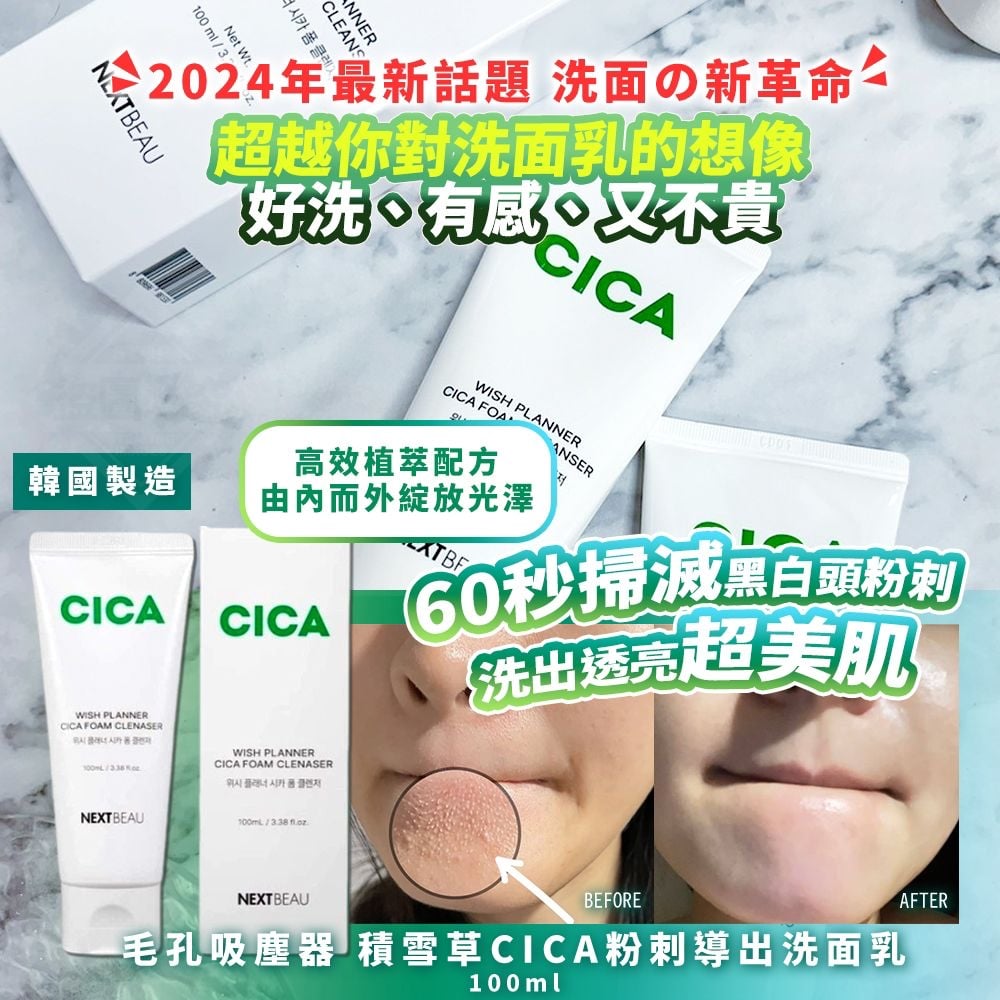 韓國製造毛孔吸塵器積雪草 CICA 粉刺導出洗面乳 100ml ❌❌截單日:23/6/2024 💰$45/支;2支以上$35/支 🚗🚗到貨日:9月中下旬 🔥2024年最新話題 洗面の新革命 💪日韓頂尖保養大廠技術開發 ❤️超越你對洗面乳的想像 好洗、有感、又不貴 ✈️出口日本 狂爆熱銷 創下銷售奇蹟 12分鐘售出28000支 ⏰60秒掃滅 「黑白頭粉刺、毛孔粗大、痘痘瑕疵、面泛油光、粗糙角質、暗沉痕跡」 💧洗臉真的很重要,清潔如果不夠徹底,空汙粉塵卡毛孔,黑頭粉刺不除根,春風吹又生,毛孔越來越粗大😭 👍這隻積雪草洗面乳真的很強大!擠都不用擠,洗完臉,粉刺就會冒出頭來,輕輕擠壓粉刺自己就會跑出來,超療癒~~再也不用痛苦!擠到滿臉通紅!短時間就能讓膚質乾乾淨淨~~ 💎逆轉膚況低潮期 洗出透亮超美肌 【 高效植萃配方 深層修護肌膚 由內而外綻放光澤 】 ✅積雪草-軟化角質 深層潔淨 肌膚瞬間暢通呼吸 ✅洋甘菊+羽衣草-延緩老化 激活年輕因子 柔嫩肌膚 綻放無暇女神光 ✅木槿花提取物 - 舒緩敏弱不適 提升肌膚防禦力 鎮靜修護 😻抵禦空氣粉塵髒污 就像給肌膚上了一層保護膜 🫶🏻持續透亮紅潤 各種角度 都淨透亮 ✴️使用方式: 取適量搓揉起泡,按摩全臉60秒,粉刺處可加強按摩,以利導出,後再以清水洗淨即可。 -規格 : 100ml -產地:🇰🇷韓國 -有效期 : 2026年4月