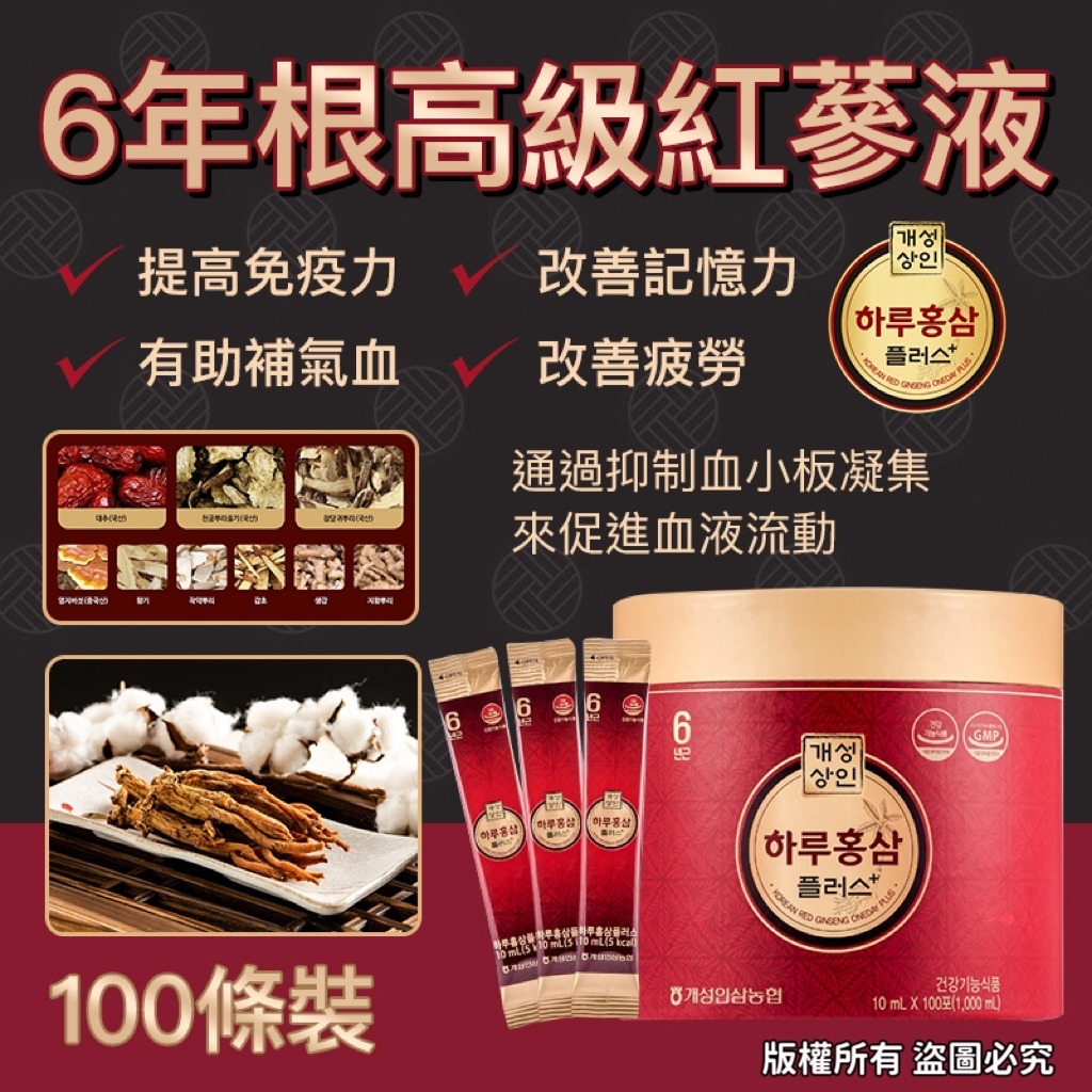 韓國製🇰🇷100年老牌六年根紅蔘液禮盒100條裝