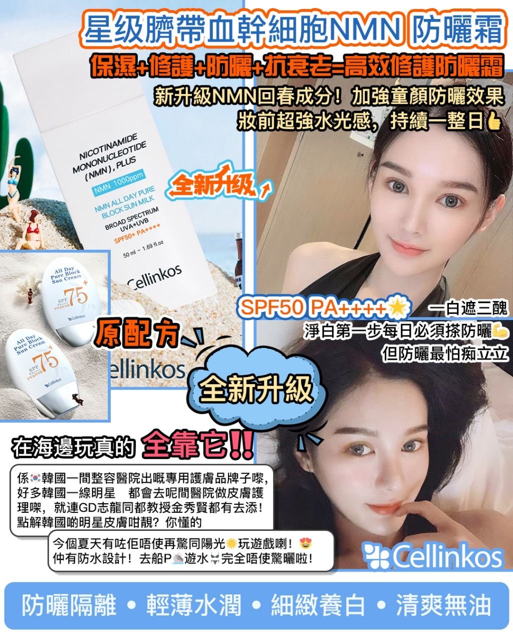 韓國🇰🇷Cellinkos 星级臍帶血幹細胞NMN 防曬霜 All Day NMN Pure Block Sun Cream 60g