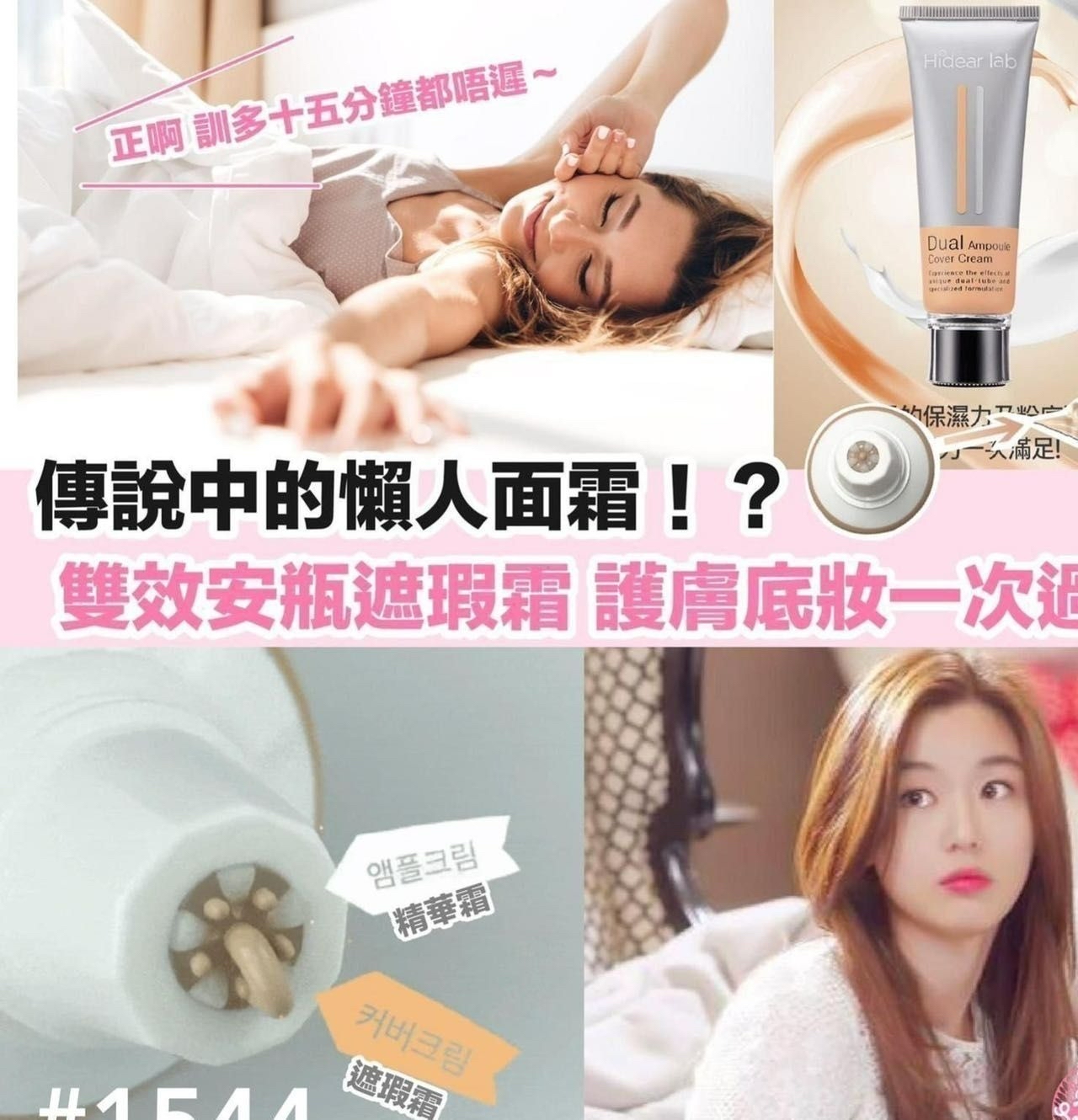 *韓國🇰🇷Hidear lab雙效安瓶遮瑕乳霜(60ml)* ❌❌截單日:30/4/2024 💰$89/支;2支以上$79/支 🚚🚚到貨日:6月下旬 【瞓多15分鐘先起身都唔遲】🤩👏🏻 🤭雙效安瓶遮瑕霜 精華+防曬+遮暇一次過🤭 我諗大家呢期都少化妝架啦~不過出門口要見人點都遮少少😳 👉🏻呢支雙效安瓶遮瑕乳霜採用精華遮瑕2合1設計,保濕護膚&底妝1支完成! 😍佢可以代替任何妝前護膚品、粉底液、遮瑕膏、碎粉精華含有積雪草 📌成份同90%豐富彈力營養成分 😙72小時持續保濕,亮滿水潤感、持久貼服遮瑕度唔會比精華削弱左,能自然遮瑕各種瑕疵如粗大毛孔、泛紅、眼周暗啞、膚色不均勻等仲有美白、改善皺紋、SPF50+PA+++防曬功效! 💗色號:No.23 自然色 💗規格:60ml