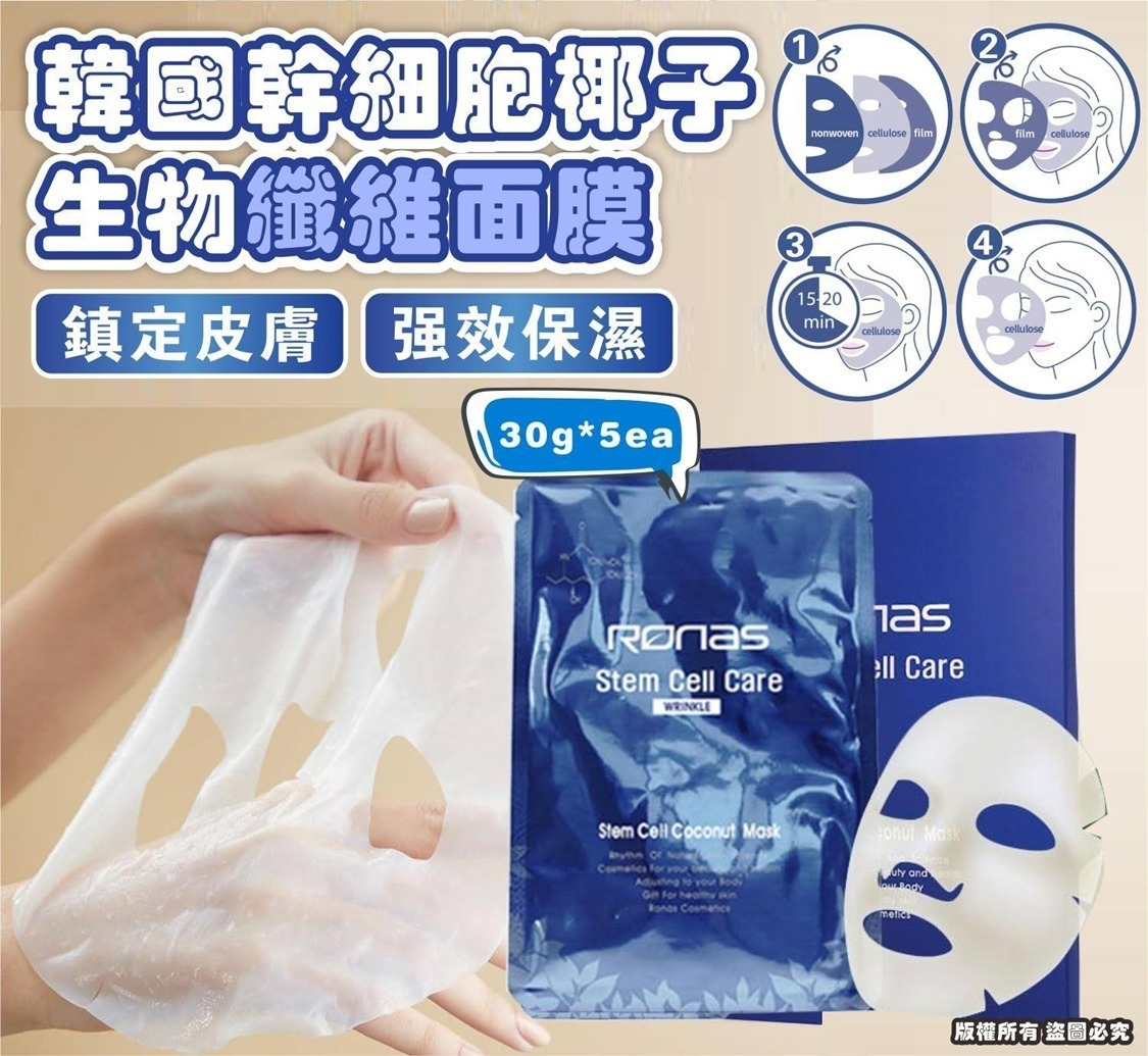 韓國🇰🇷Ronas STEM CELL Coconut mask幹細胞椰子生物纖維面膜(一套5入)