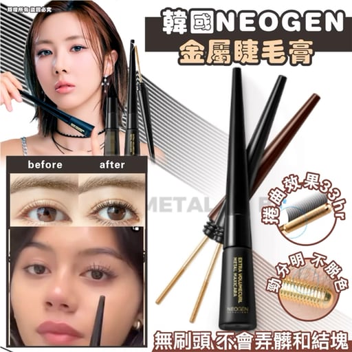 韓國 NEOGEN 金屬睫毛膏 ❌❌截單日:22/5/2024 💰$138/支;2支以上$128/支 🚚🚚到貨日:7月下旬 #韓國睫毛膏 #睫毛膏 #睫毛液 #韓國NEOGEN #金屬睫毛膏 #韓國NEOGEN金屬睫毛膏 ✅韓國神品,捲曲效果達致33hr ,勁分明,不脱色 ✅創新金屬睫毛膏,使用金屬刷刷毛均勻地塗上睫毛線,實現終極、持久的提升和全天的娃娃般的睫毛 ✅其天然配方可平滑地滑動您的每一隻睫毛,豐盈、延長和捲曲所有睫毛,同時強效滋養和滋潤我們的睫毛 ✅只需輕輕一掃,這款睫毛膏將持續一整天,甚至超過 33 小時,不會弄髒、結塊和塗抹。