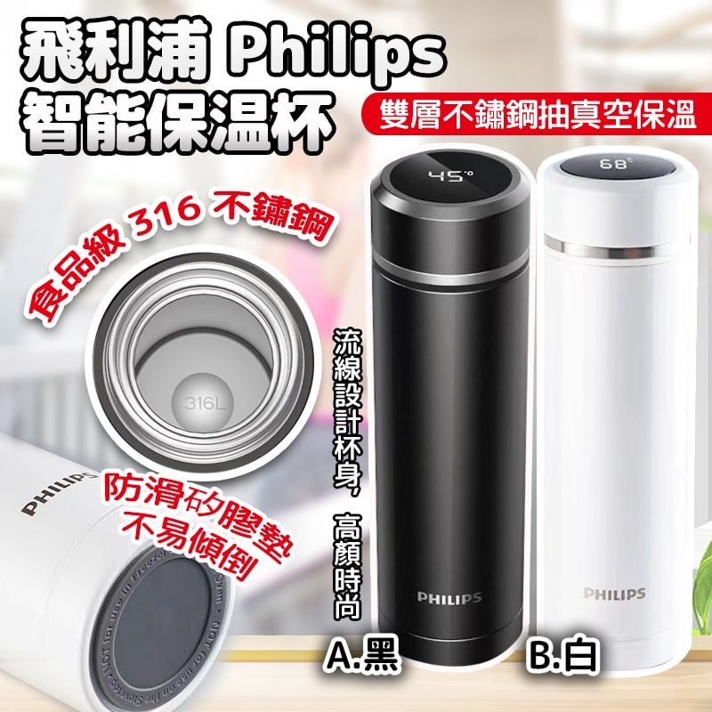 飛y浦 Philips 316 智能保温杯 500ml ❌❌截單日:2/6/2024 💰$89/個;2個以上$79/個 🚚🚚到貨日:7月下旬 勁抵~~ 近期🔥大熱Philips 🔥嘅產品之前有媽媽想搵🙋🏻♀️ 而家問咗供應商可以開團👏🏼👏🏼 隨時都可以有熱水飲👍🏼👍🏼 ✅流線設計杯身,高顏時尚 ✅雙層不鏽鋼抽真空保溫 ✅食品級 316 不鏽鋼 -規格︰500ml(顏色隨機)